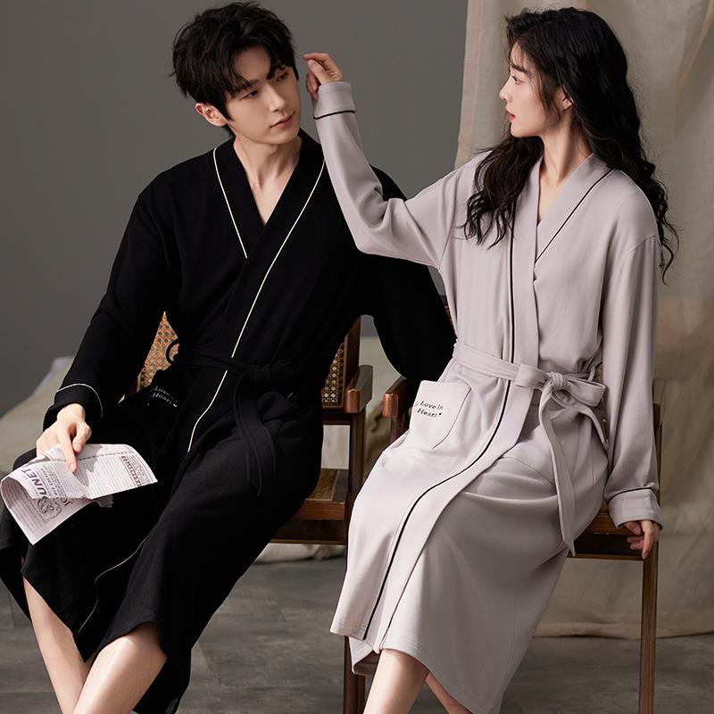 情侣浴袍男士 薄绒中长款 浴衣大衣1009c 秋冬季 秋冬珊瑚绒睡袍女款