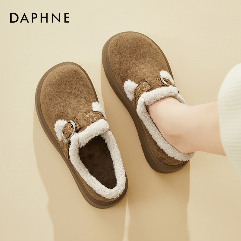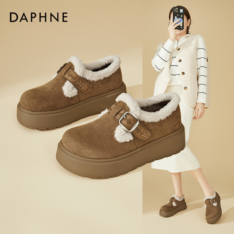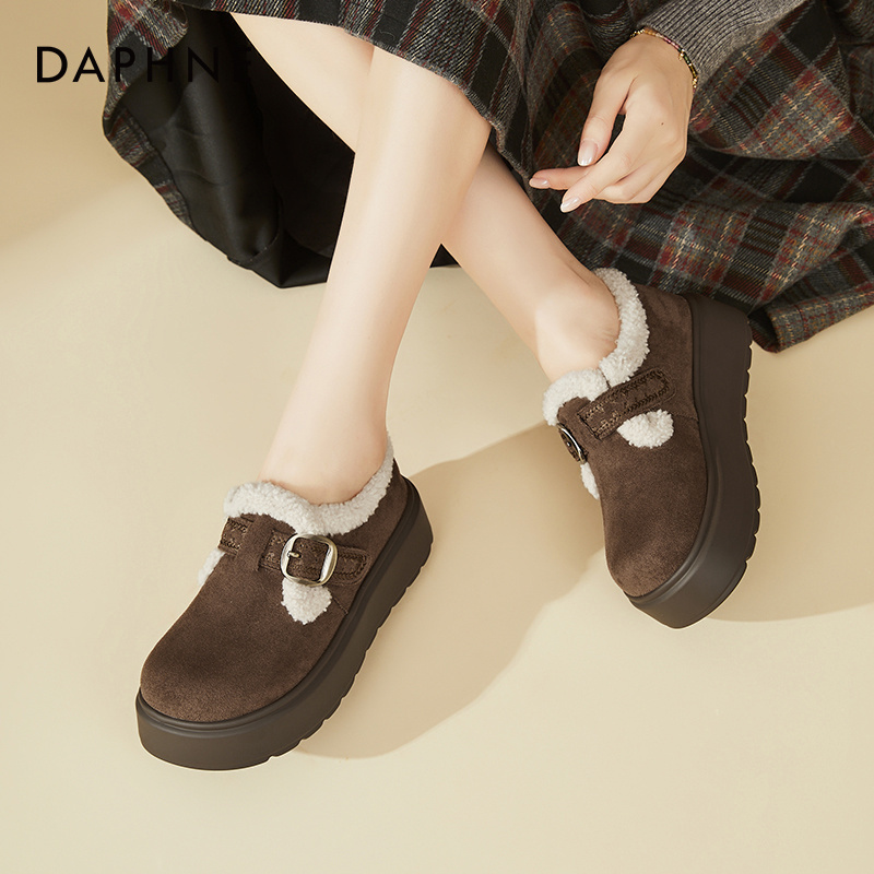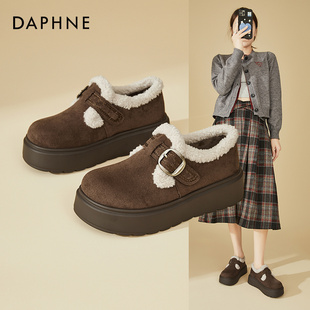 加绒厚底百搭保暖小众鞋 达芙妮经典 新款 女2025年冬季 子 复古博肯鞋