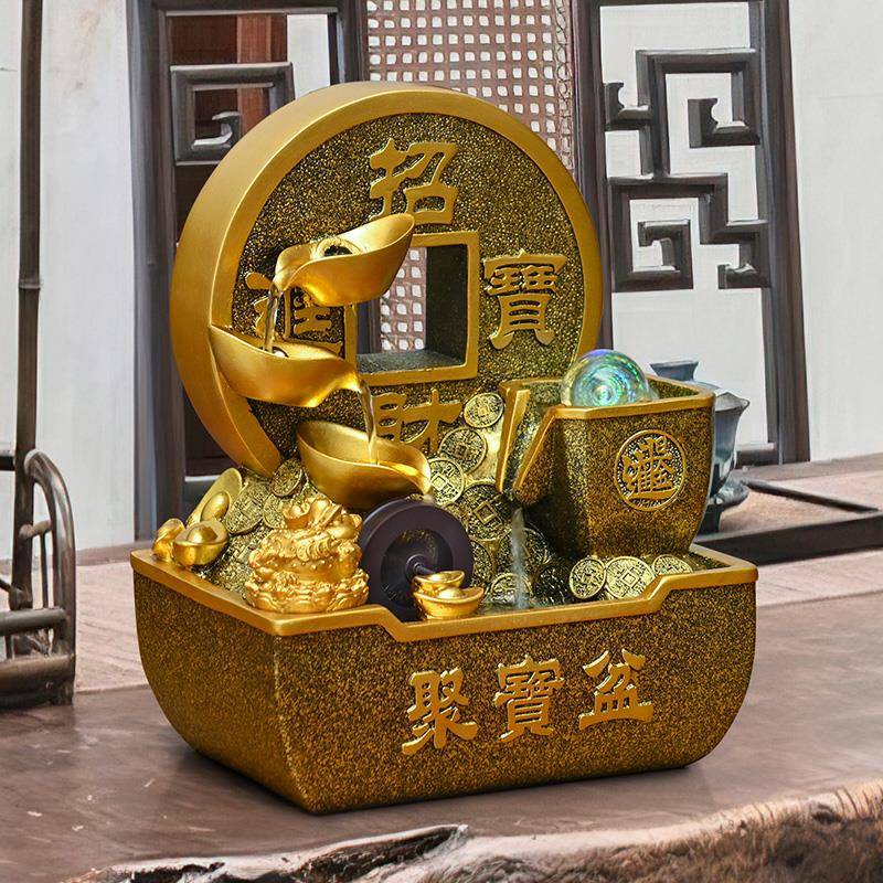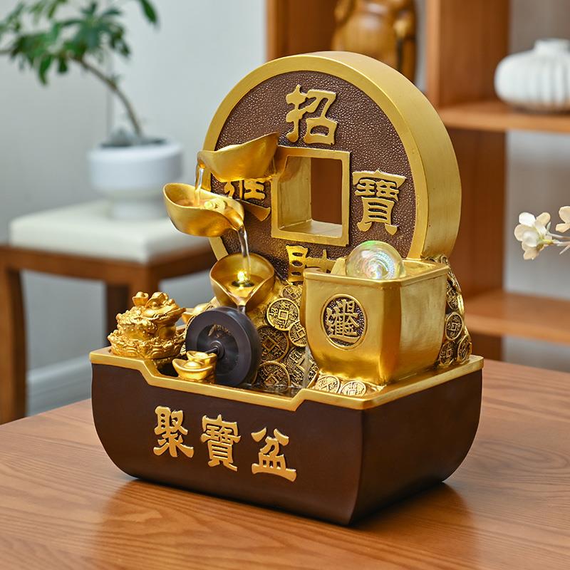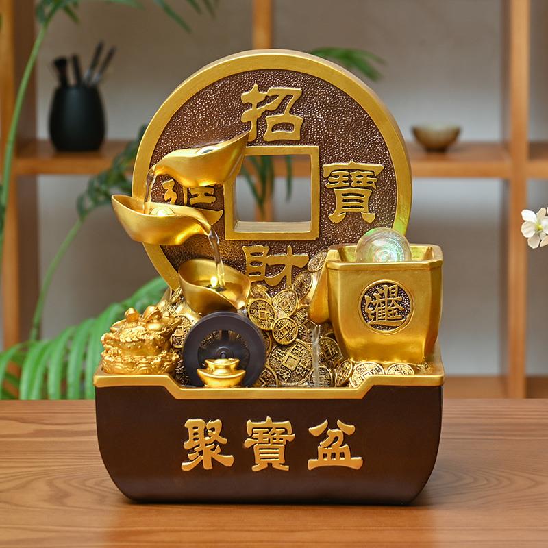 新中式 招财流水摆件循环水聚宝盆客厅玄关风水轮生财开业乔迁礼物