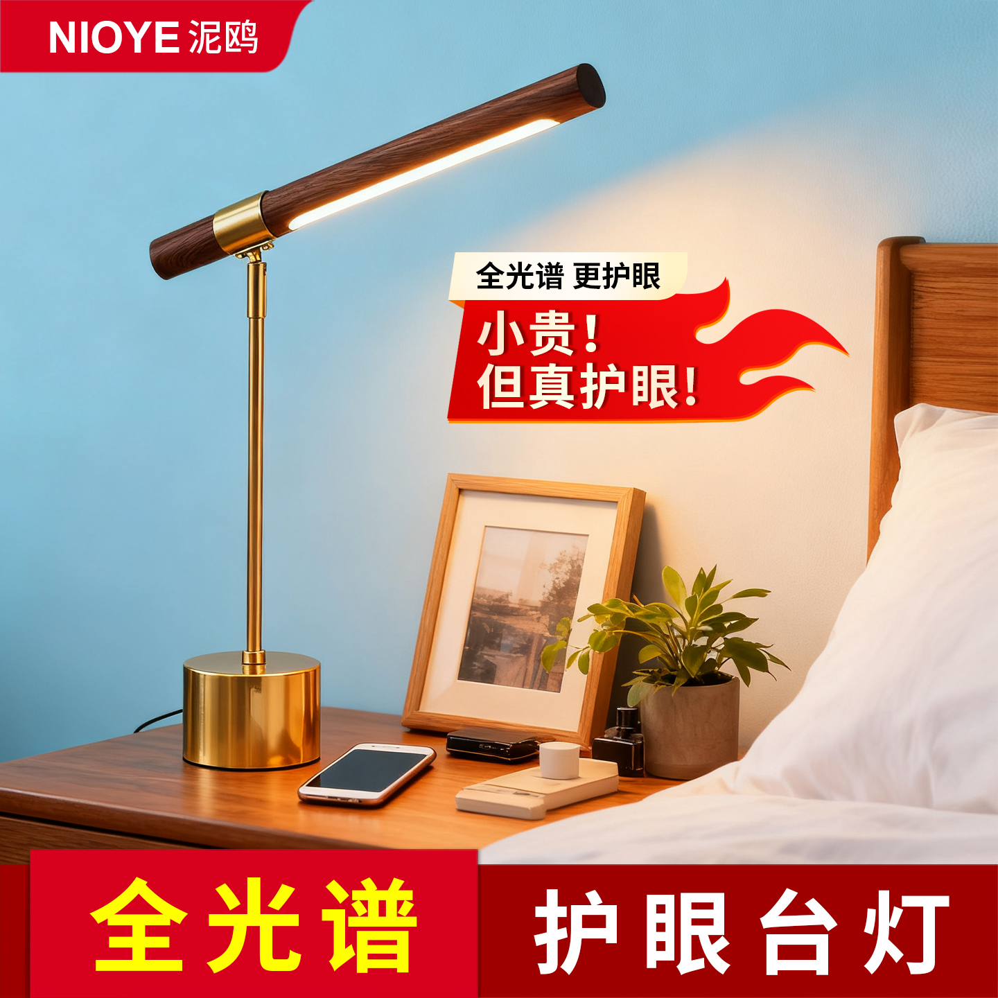 台灯卧室床头灯轻奢高级感复古主卧看书房书桌灯全光谱护眼阅读灯