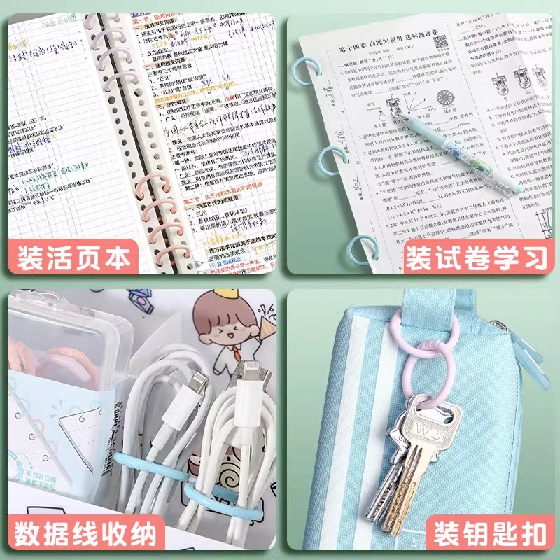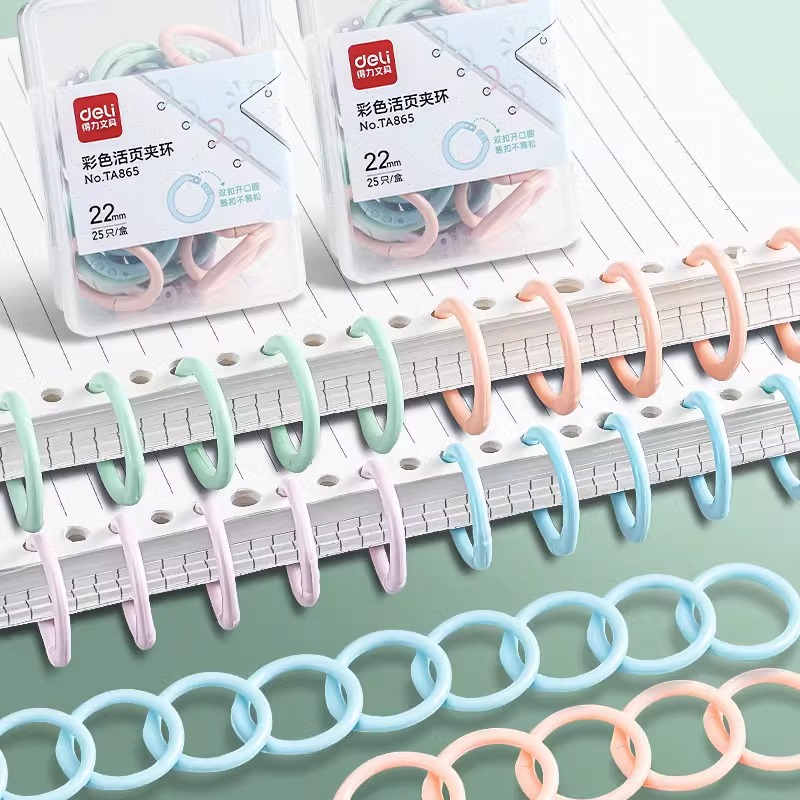 订环 订圈活页夹环线圈环打孔器学生书本装 得力彩色活页扣环扣圈可拆卸打孔器文件扣学生书本装 订夹环固定扣装