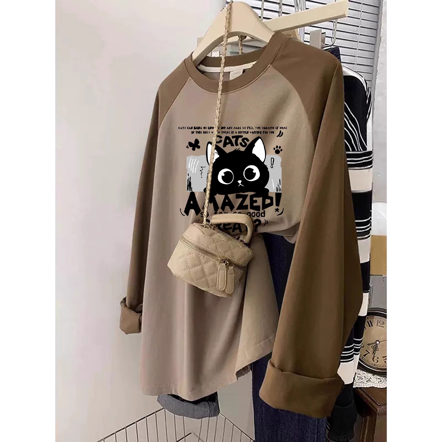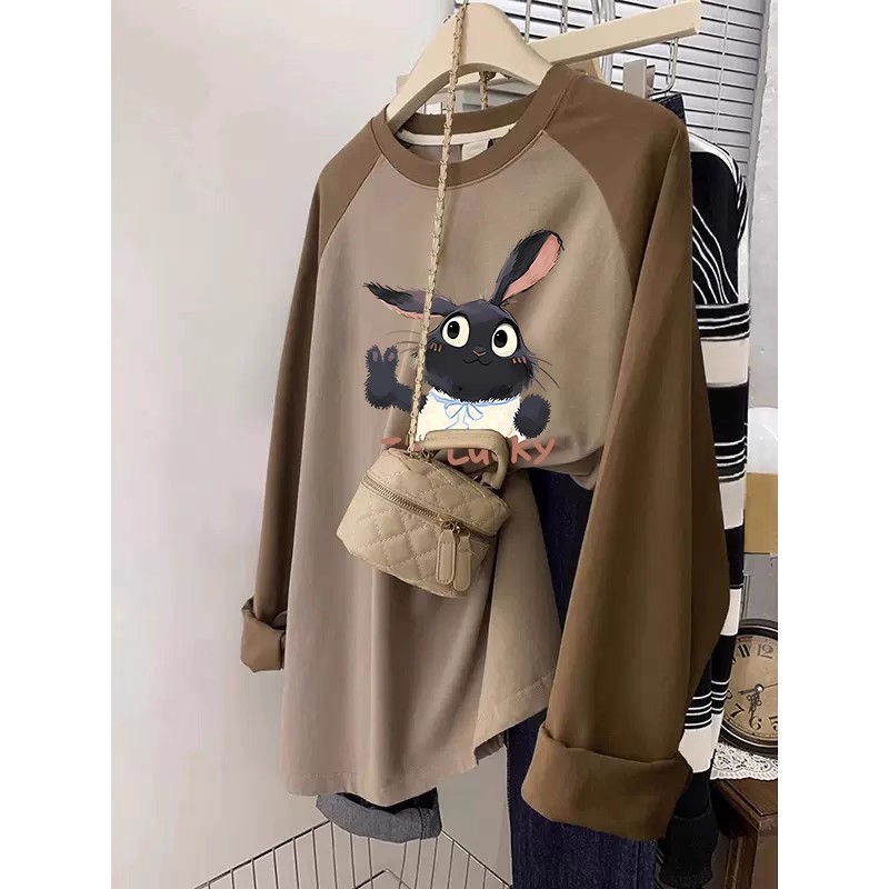 胖mm宽松遮肚藏肉内搭上衣打底衫 大码 2025春季 纯棉插肩T恤女长袖