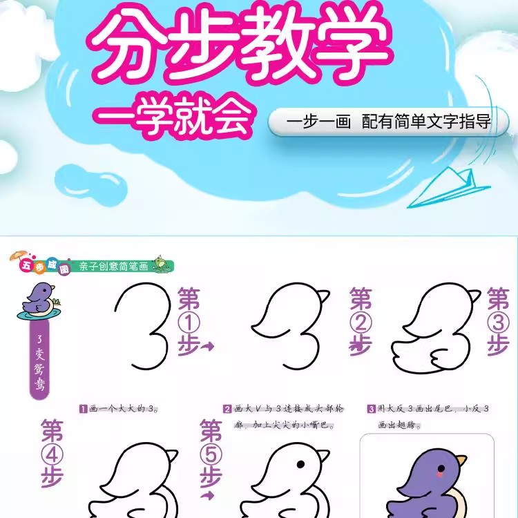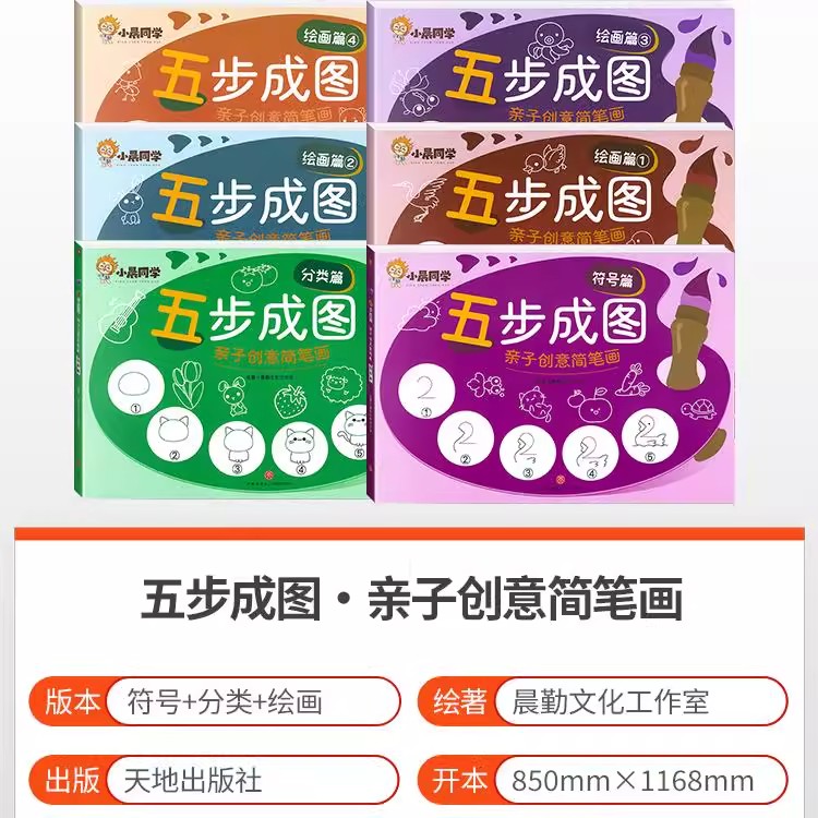 小晨同学五步成图亲子创意简笔画手绘本儿童动物符号趣味学画画幼儿分类绘画启蒙教材亲子互动涂鸦少儿简易入门零基础学方法教程