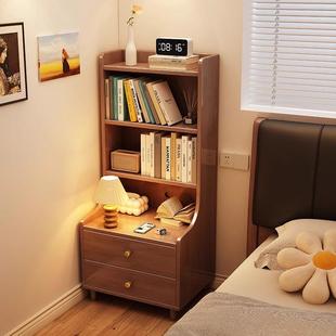 实木床头柜书架一体多层置物架卧室床边加高储物柜小型窄款 收纳柜