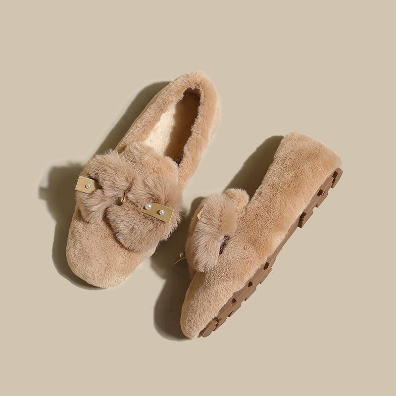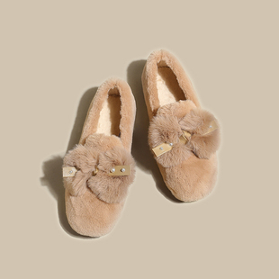 室内家居保暖防滑毛毛绒拖鞋 秋冬季 女冬天 女2025新款 蝴蝶结棉拖鞋