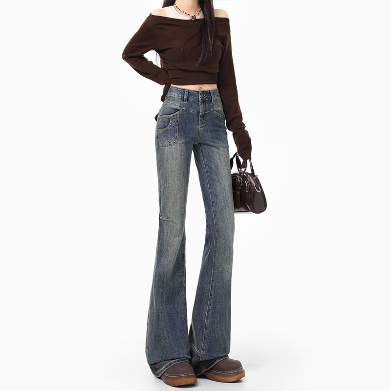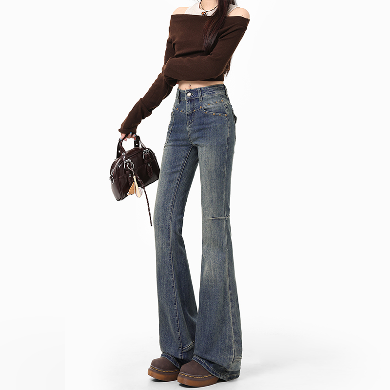 设计感喇叭马蹄裤 复古蓝微喇加绒牛仔裤 女2025年秋冬高腰显瘦修身