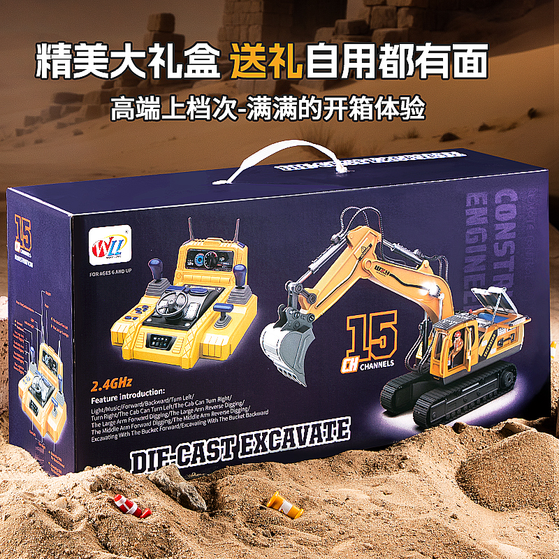 超大号儿童合金遥控挖掘机玩具汽车工程车小男孩推土挖机生日礼物