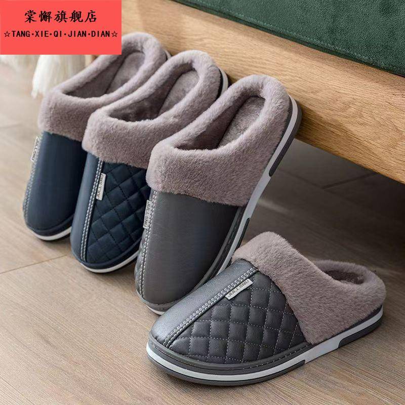 PU防水居家用室内防滑保暖老年人大码 老人棉 冬季 男士 女 拖鞋