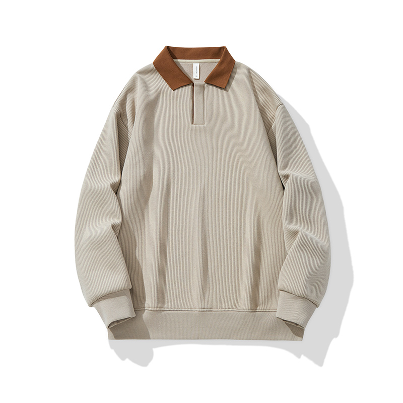 翻领宽松休闲独特上衣S 秋季 one more奶白色polo领卫衣女2025新款