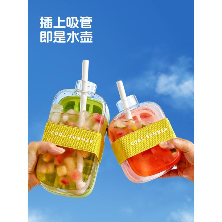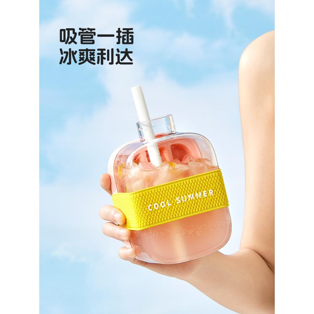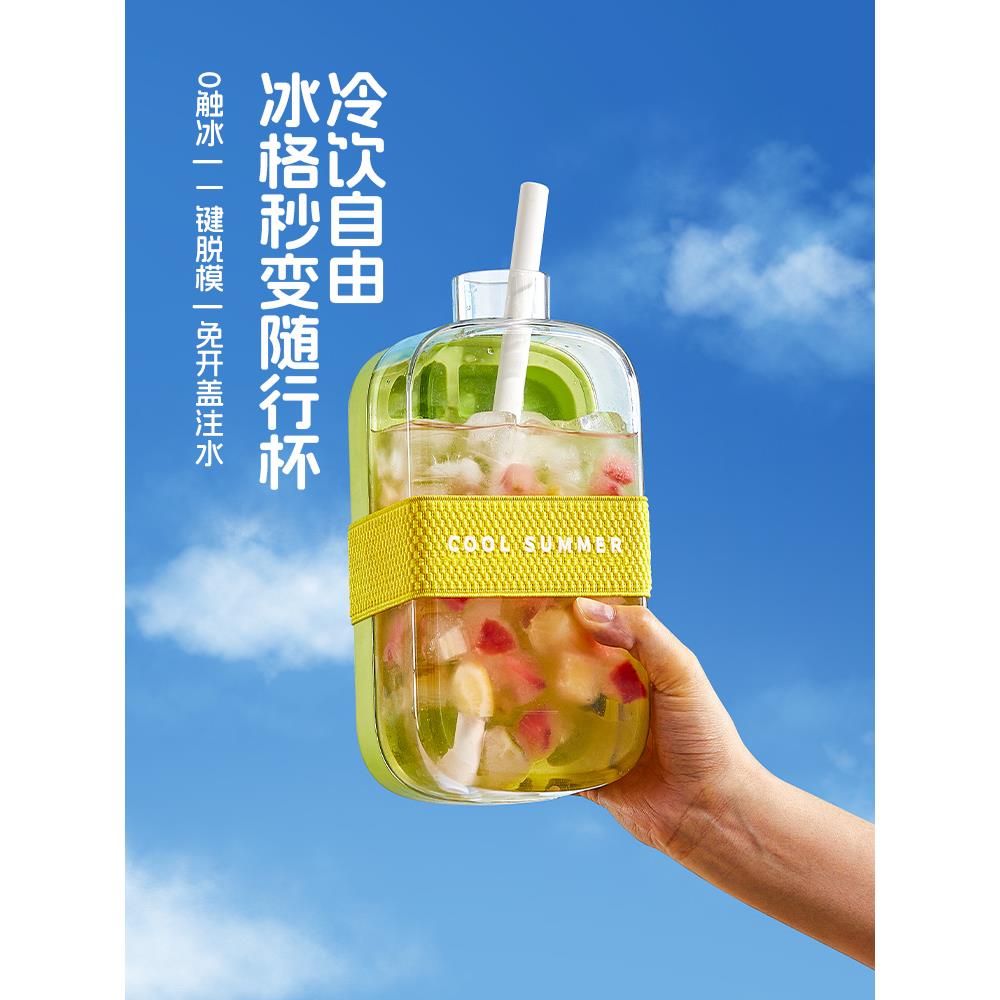COOL爽冰格水壶随手杯便携吸管水杯女大学生夏天注水按压冰格模具