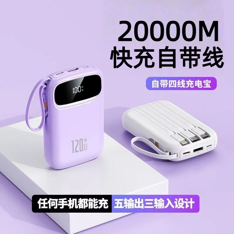 自带线20000毫安大容量充电宝官方旗舰店快充适用手机快充便捷出行可上飞机手机通用超级快充 3C安全认证