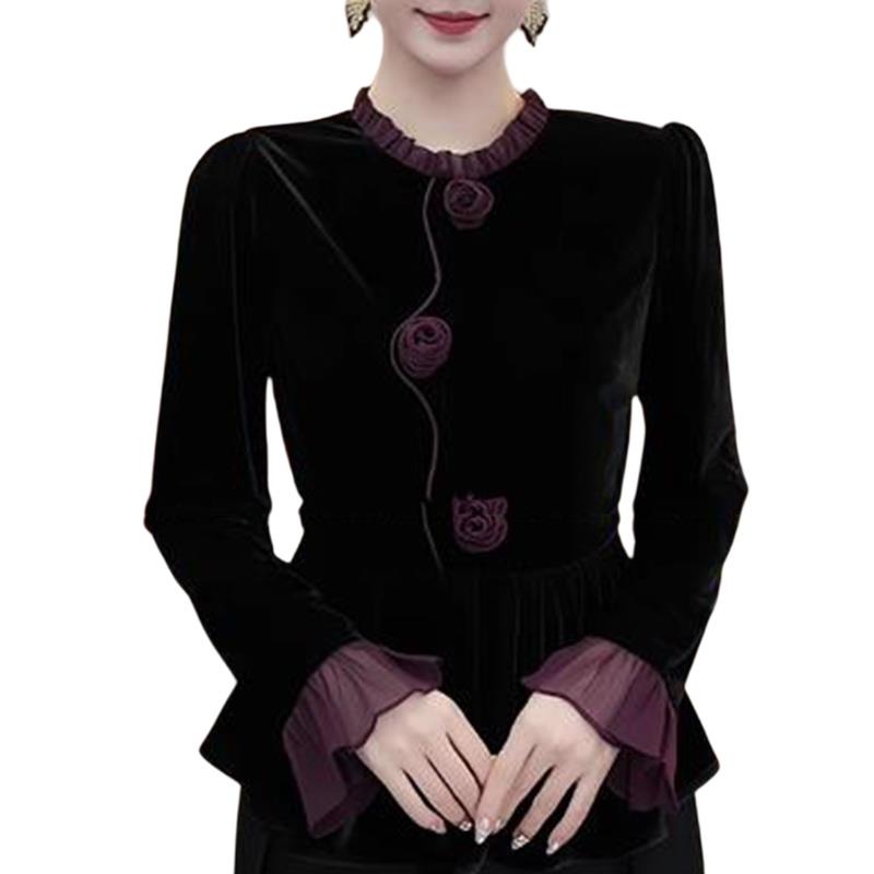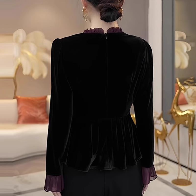 洋气小衫 漂亮时尚 气质上衣1010z t恤女士2025年新款 秋冬金丝绒长袖