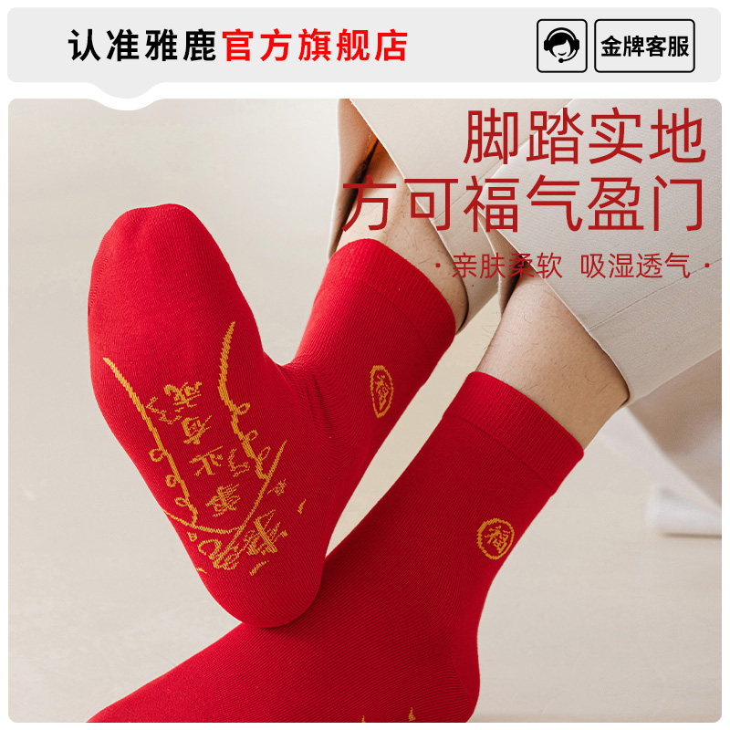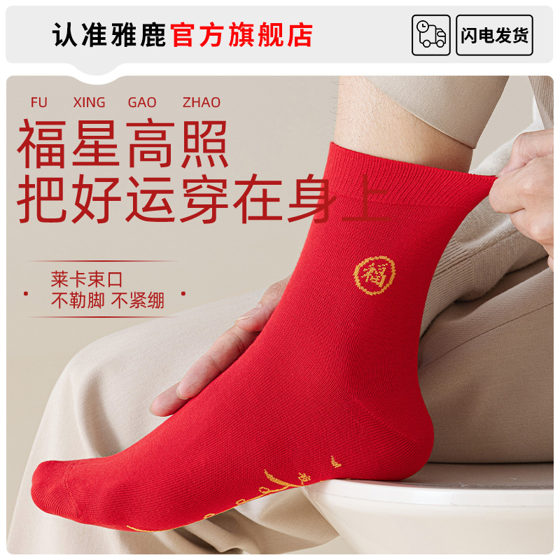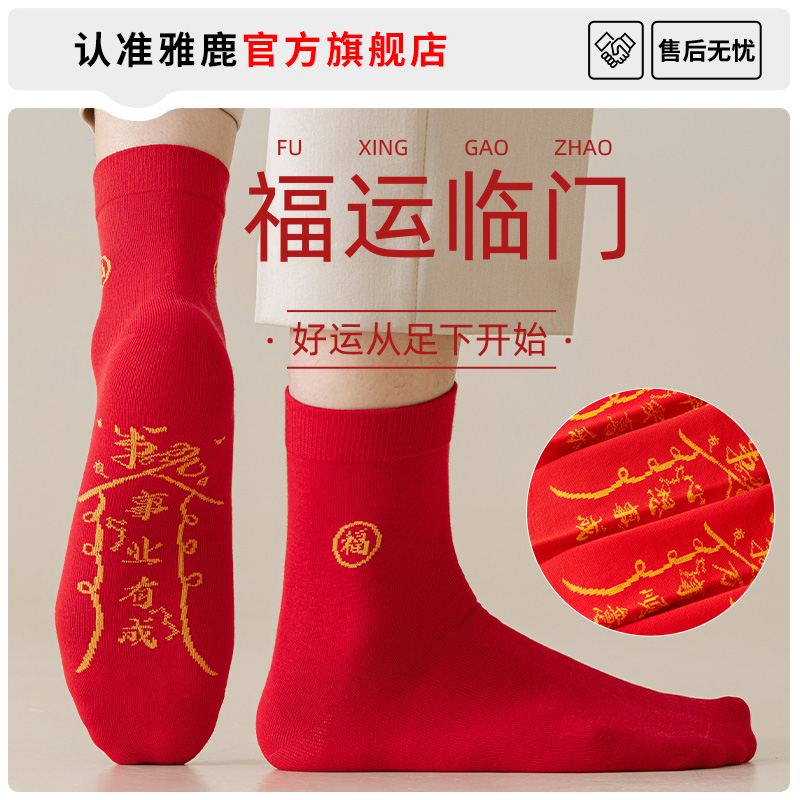 雅鹿本命年大红袜子男士 棉中筒袜2025蛇年结婚情侣秋冬长袜多规格