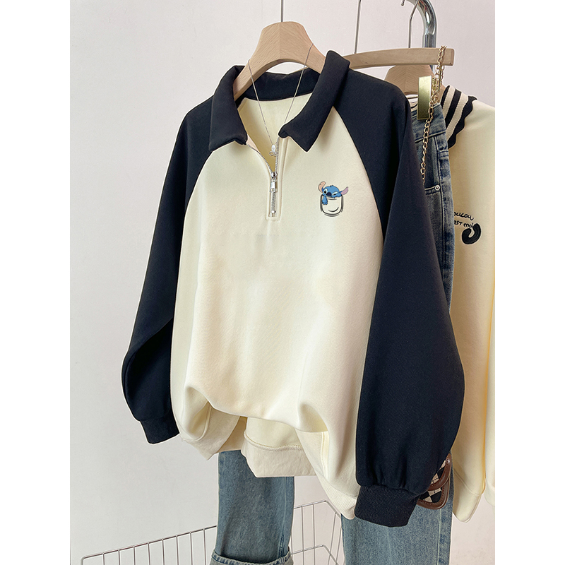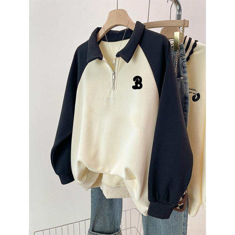 上衣加绒宽松上衣 胖mm设计感oversize长袖 慵懒风插肩2025春季 新款