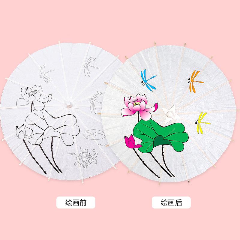 儿童diy空白油纸伞工艺伞白色幼儿园美术纸伞diy儿童手工填色绘画