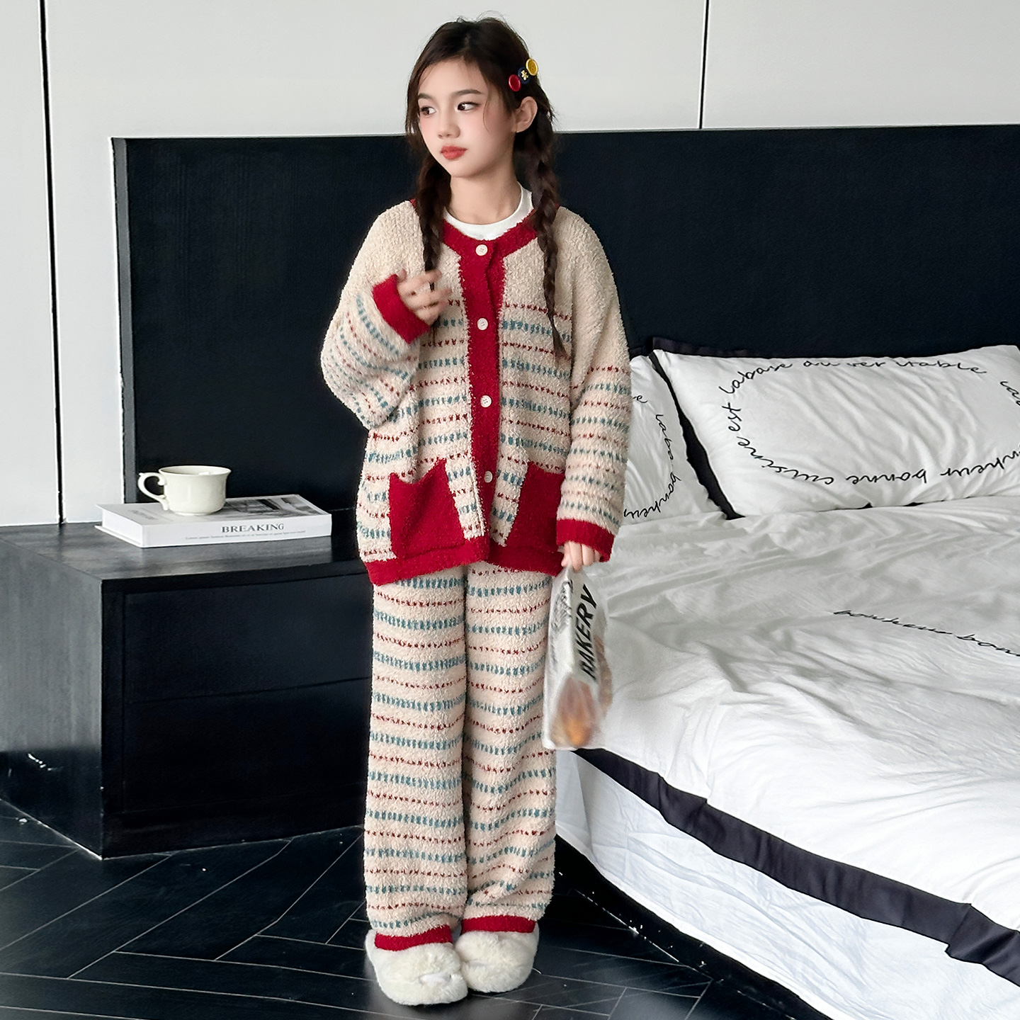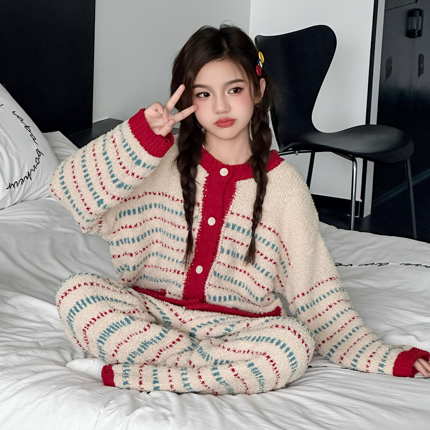 儿童超好看半边绒家居服大童女孩珊瑚绒套装 女童睡衣冬季 2025新款