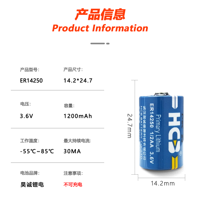 2AA绝对值探头电池ls14250波龙探头雷尼绍探头表电饭煲ETC温度报警 3.6V电池1 昊诚ER14250 台达PLC伺服编码