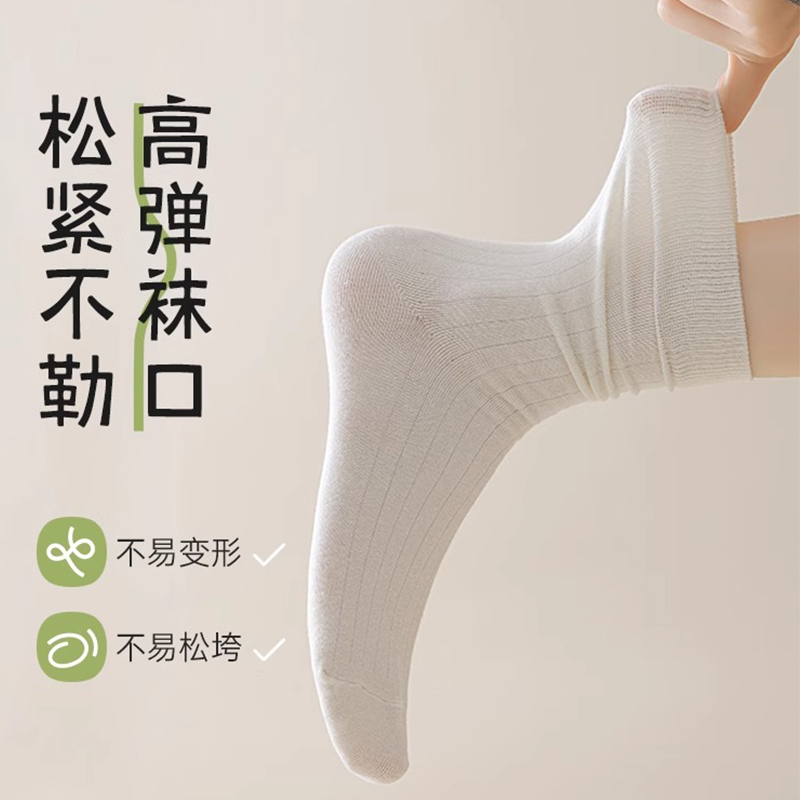 袜子女春秋季 中筒袜抑菌防臭加长堆堆棉袜黑色松口月子袜女士长袜
