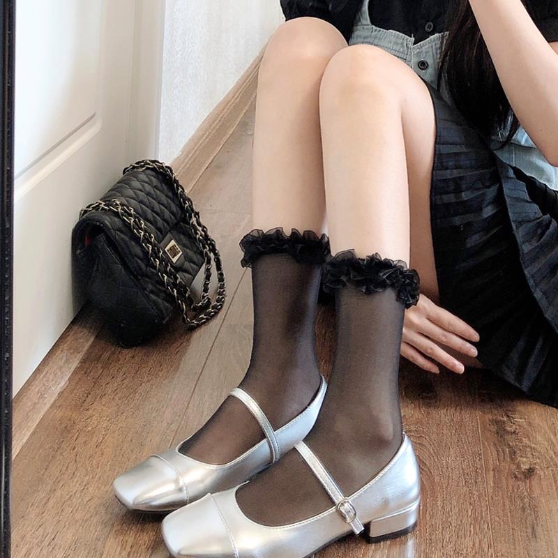 秋冬白丝女薄蕾丝花边堆堆袜短袜子甜美中筒袜奶白色小腿袜1013z