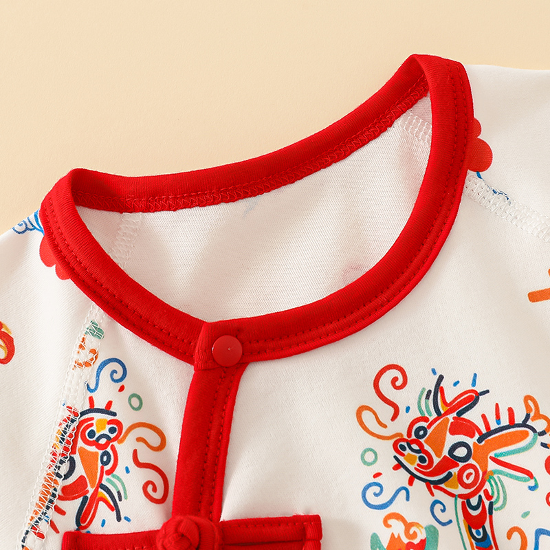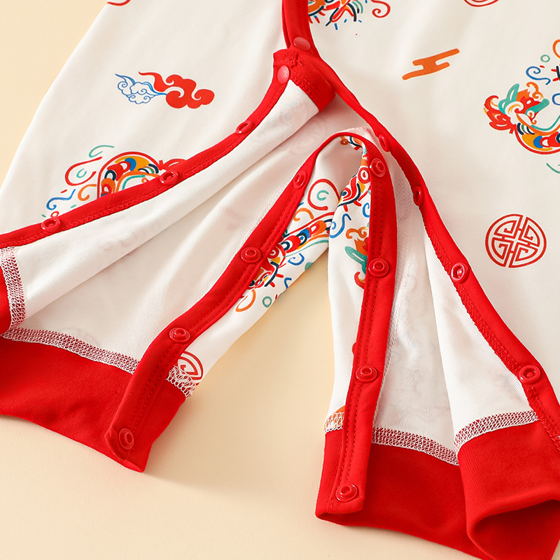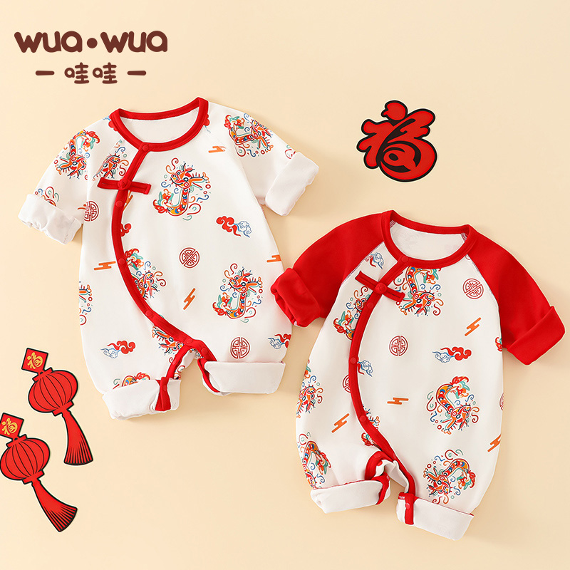 宝宝满月服春秋婴儿衣服连体衣纯棉红色新生百天周岁礼服新中式