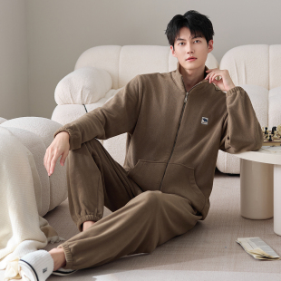 半边绒翻领保暖家居服套装 yso 新款 情侣睡衣女秋冬季 定金预售
