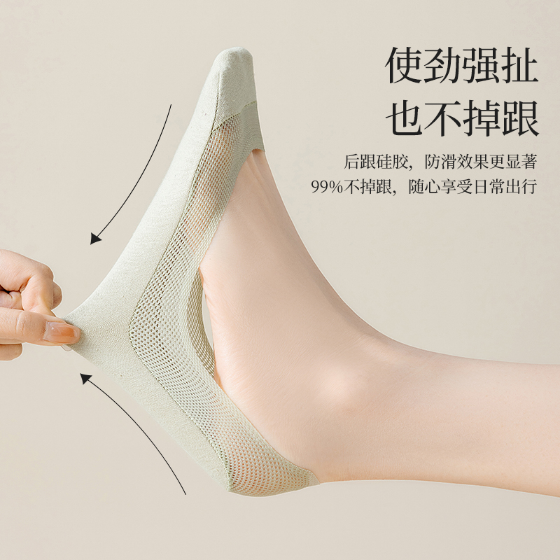 单鞋 纯棉袜子女冰丝浅口短袜夏款 隐形袜防滑不掉跟 薄款 船袜女夏季
