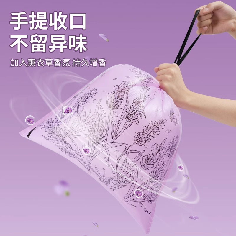 艾草垃圾袋薰衣草香氛驱蚊家用加厚手提式 厨房清香 防蚊加大抽绳式