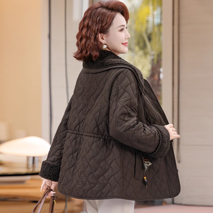 夹棉加厚外套女短款 2025韩系宽松简约小个子菱格棉服 上衣秋冬新款