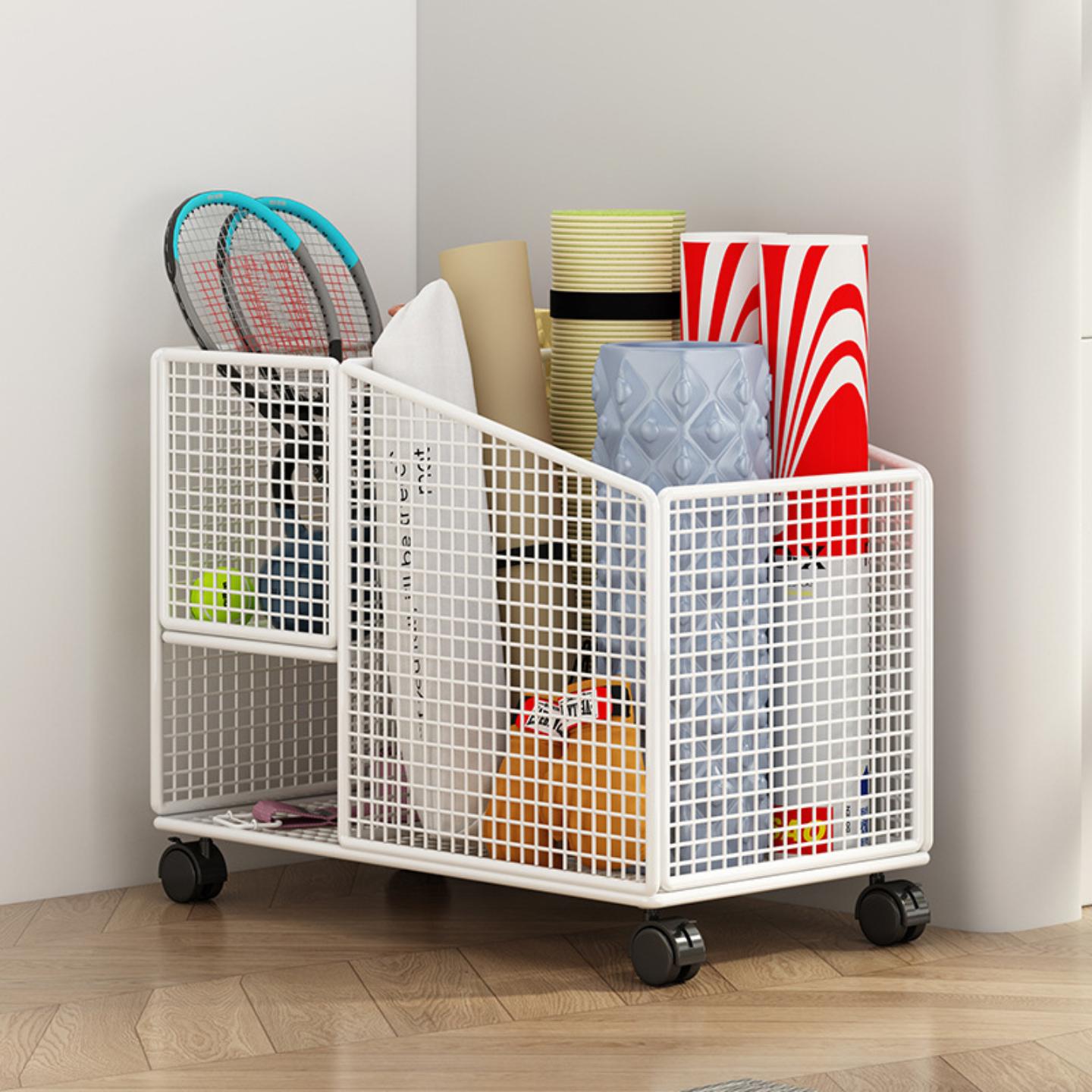 健身器材收纳瑜伽垫收纳架家用工具夹缝收纳筐运动篮球哑铃置物架