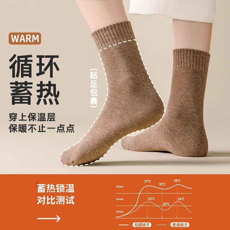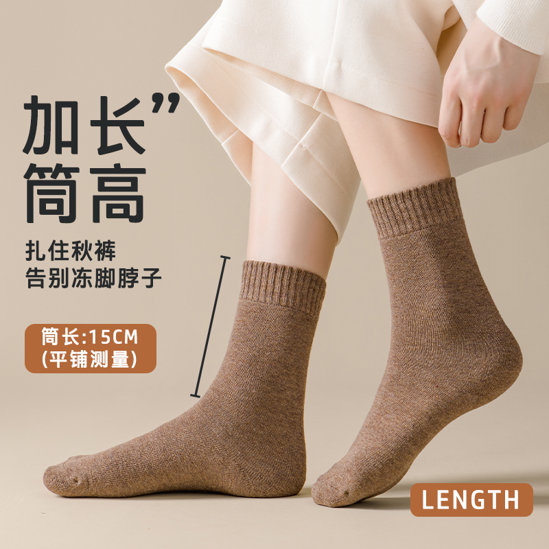 袜子女款 加绒加厚保暖中筒袜睡眠毛圈袜防寒冬巨厚长袜加长 秋冬季