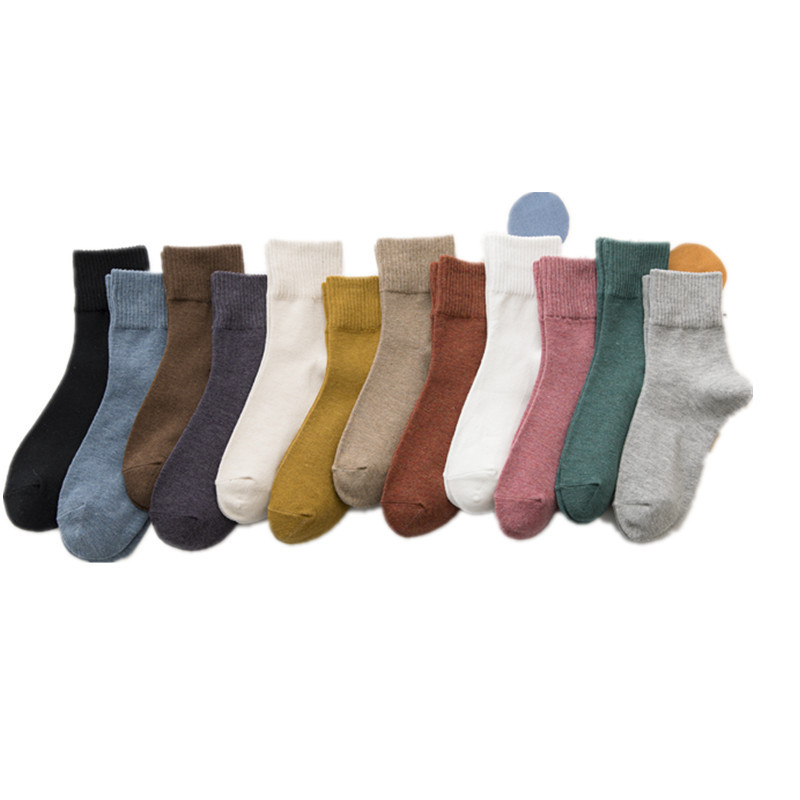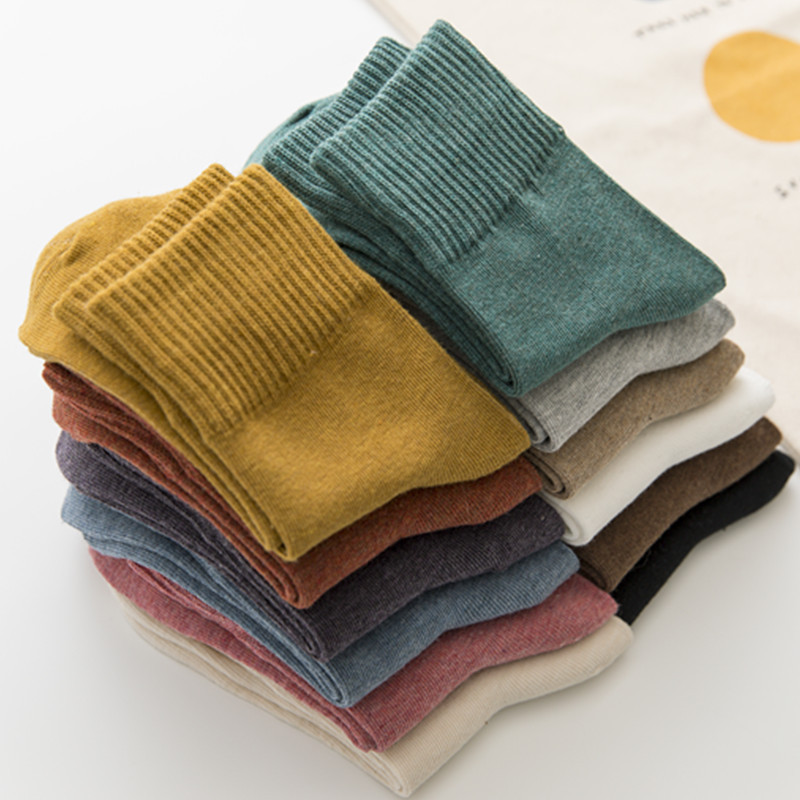 现货女 包邮 5双装 秋冬袜日系纯色女士中筒袜高罗口全棉袜子女