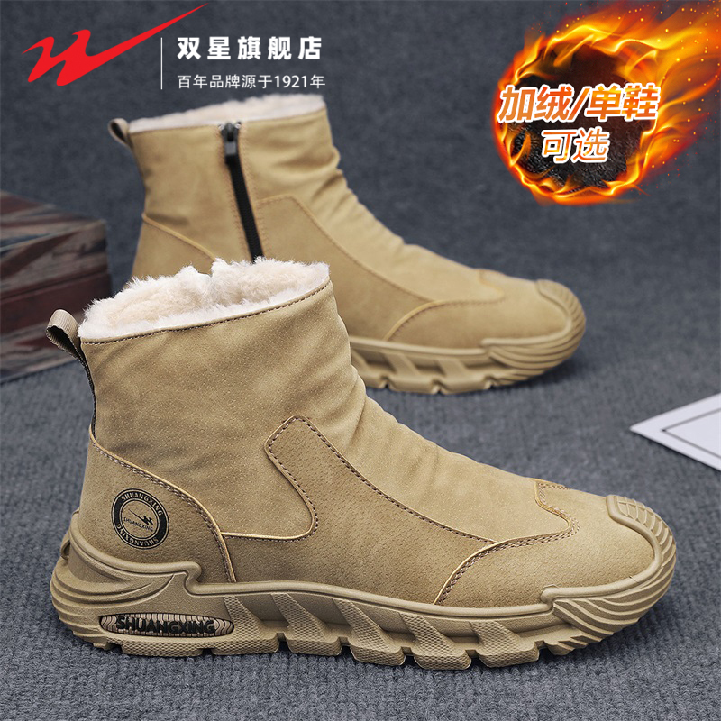 加绒保暖劳保马丁棉靴运动皮毛一体东北大棉鞋 双星男鞋 雪地靴冬季