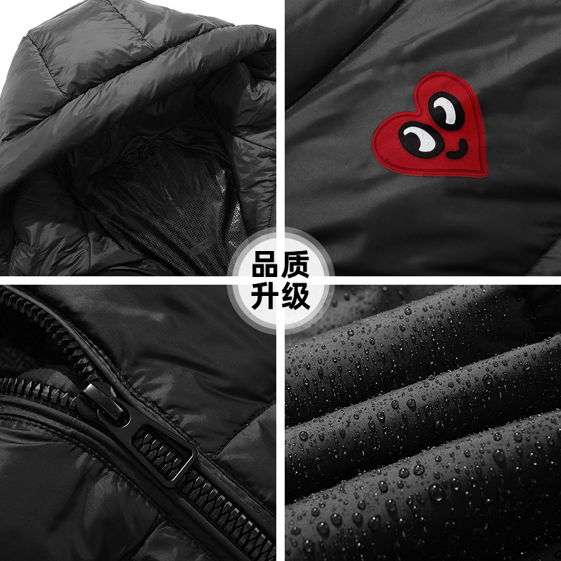 查尔斯桃心90鸭绒石墨烯加厚连帽羽绒服情侣套装 两件套 抽绳休闲裤