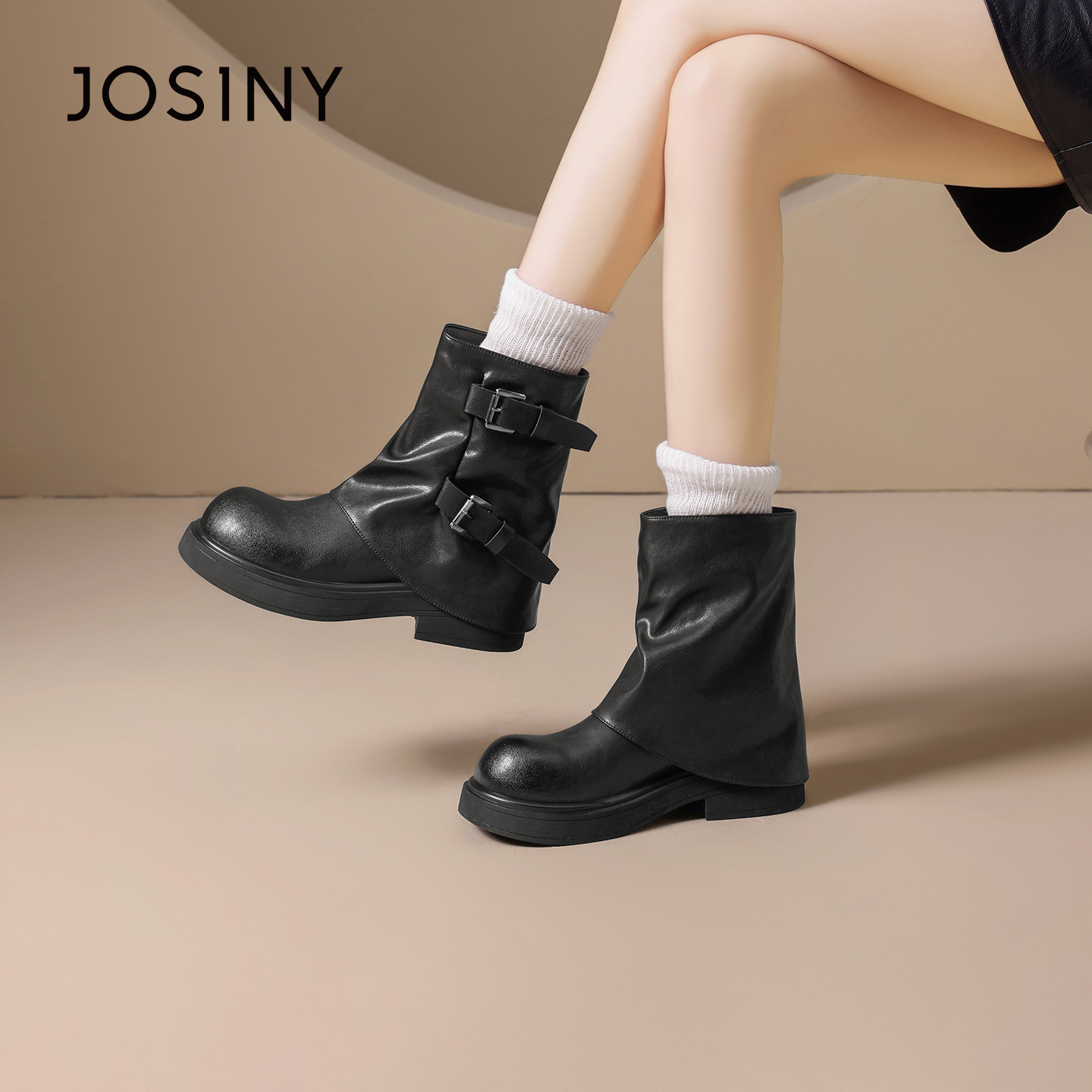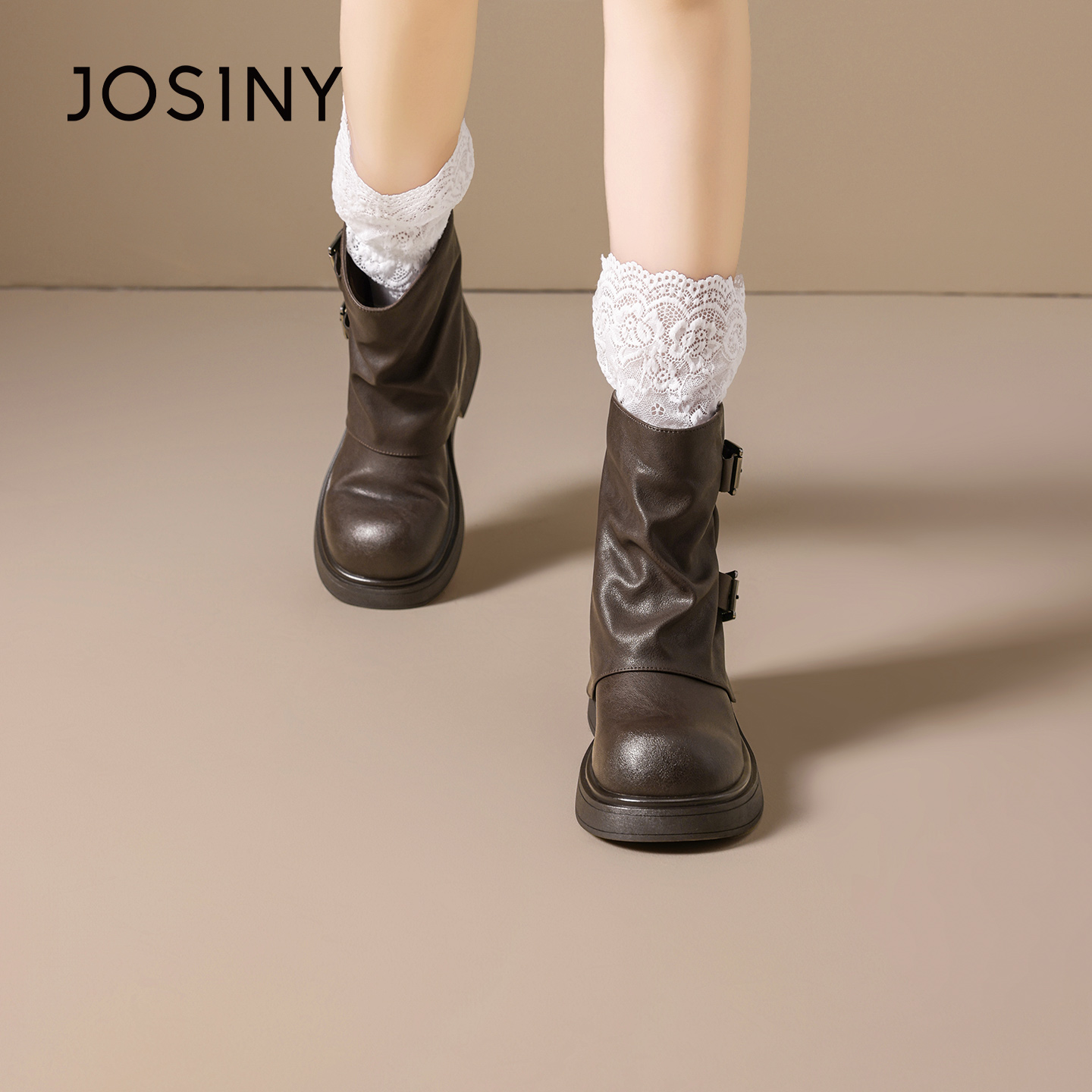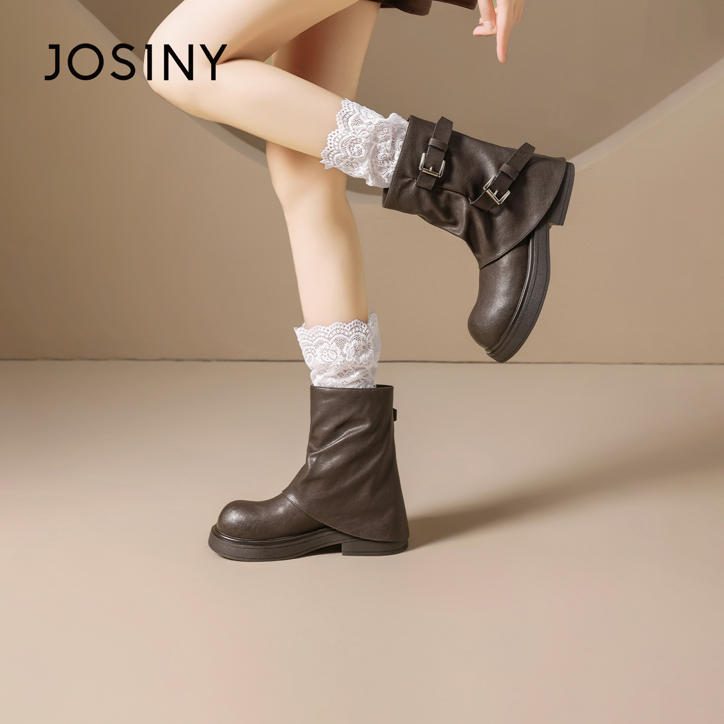 舒适短筒靴潮流百搭粗跟时装 时尚 靴 复古学院鞋 卓诗尼2025秋冬新款