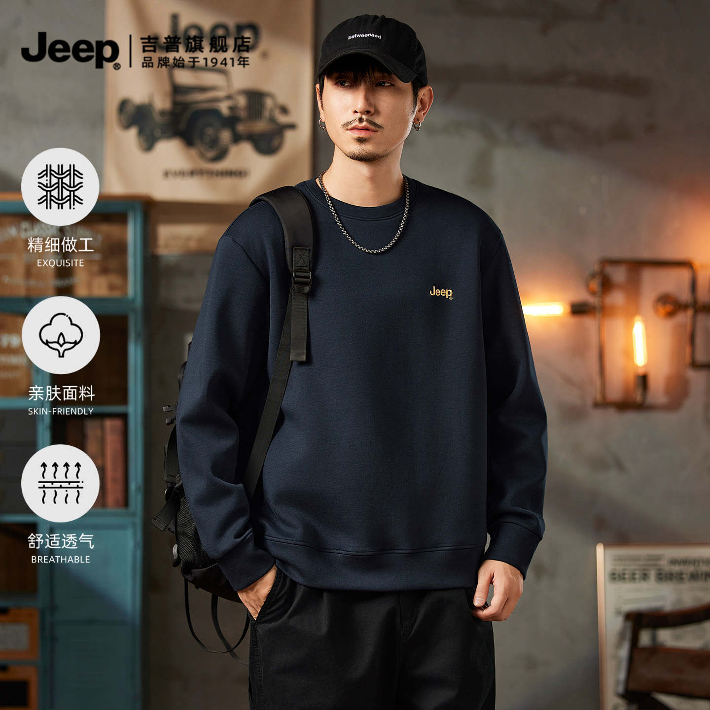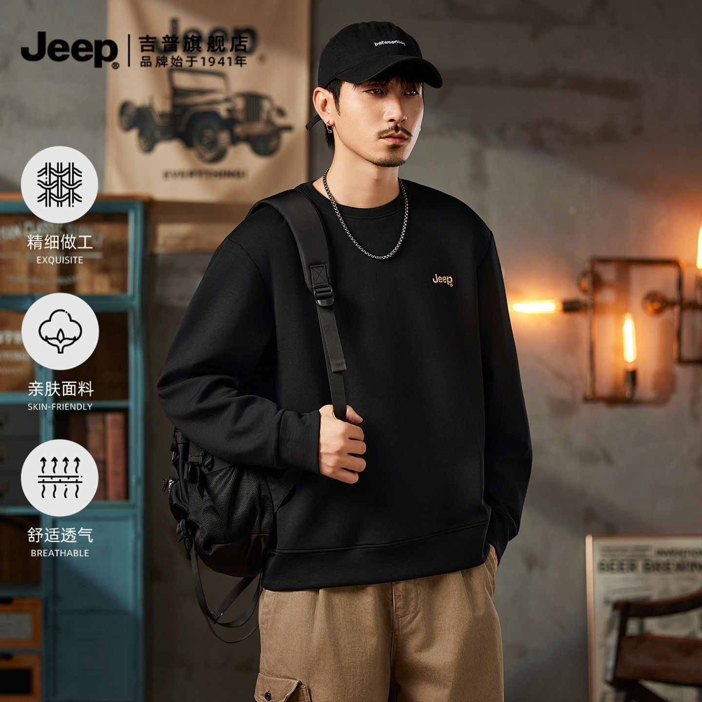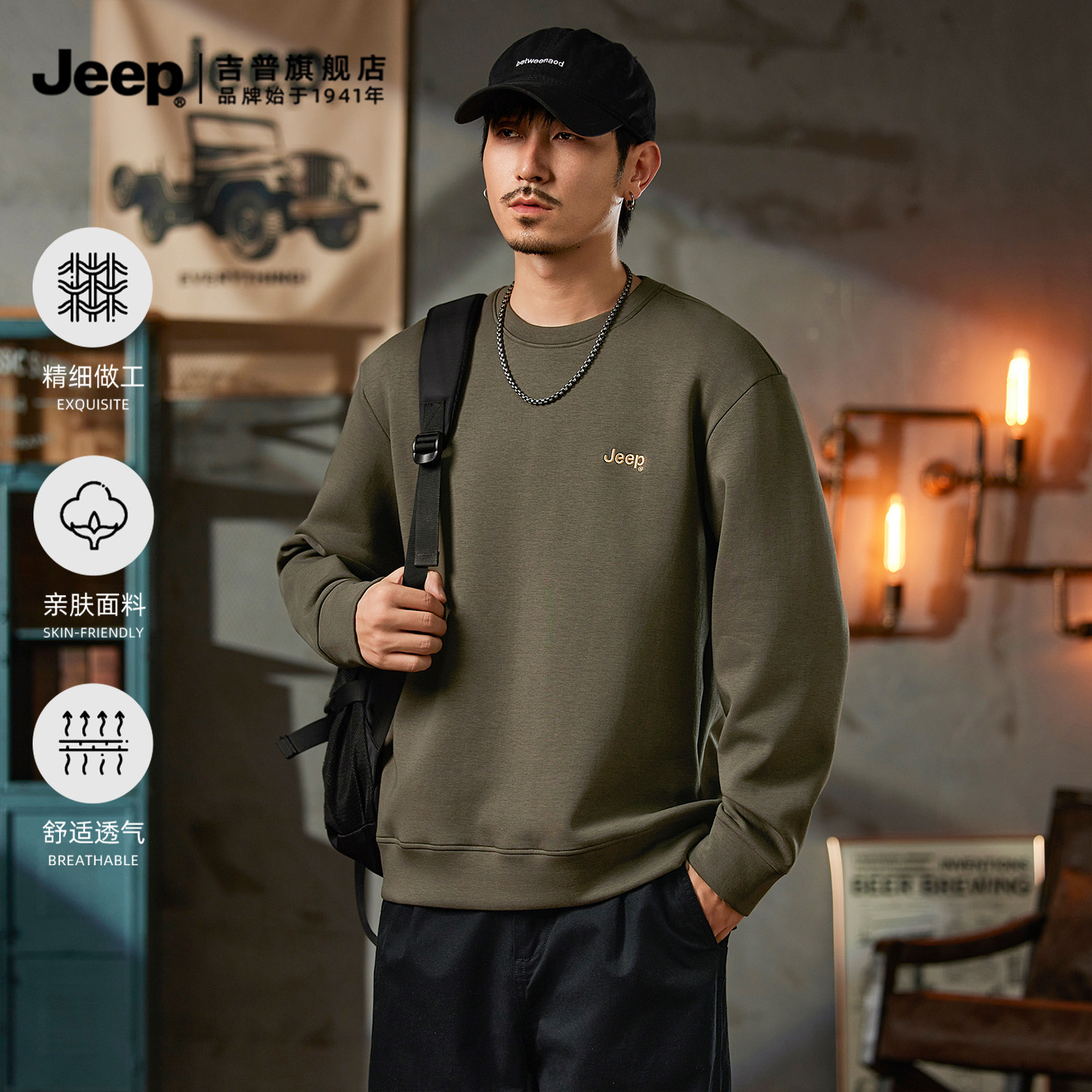 秋季 潮流纯色秋装 宽松长袖 男士 上衣 2025新款 JEEP吉普圆领卫衣男款