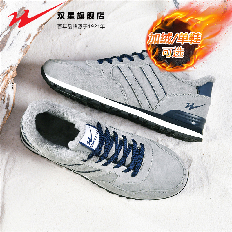阿甘板鞋 加绒保暖棉鞋 男士 运动大码 双星男鞋 软底轻便百搭潮鞋 冬季