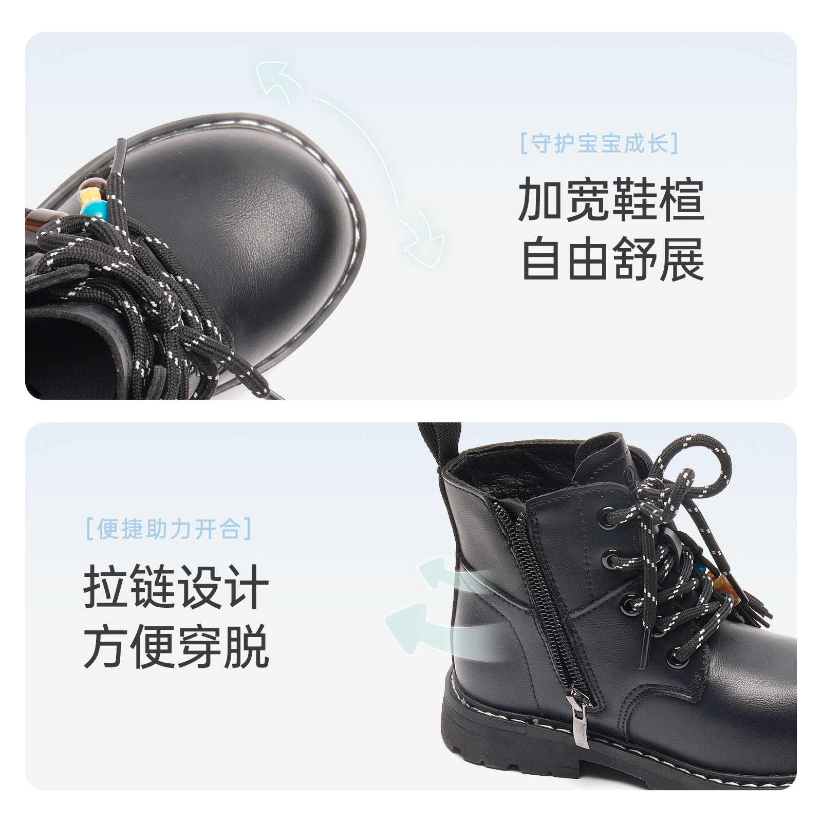 靴儿童复古百搭马丁靴 英伦风户外工装 小米步女童皮靴2025冬季 新款