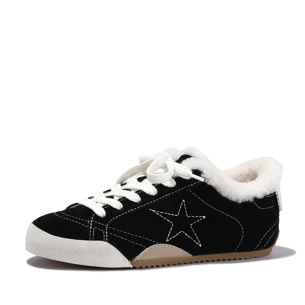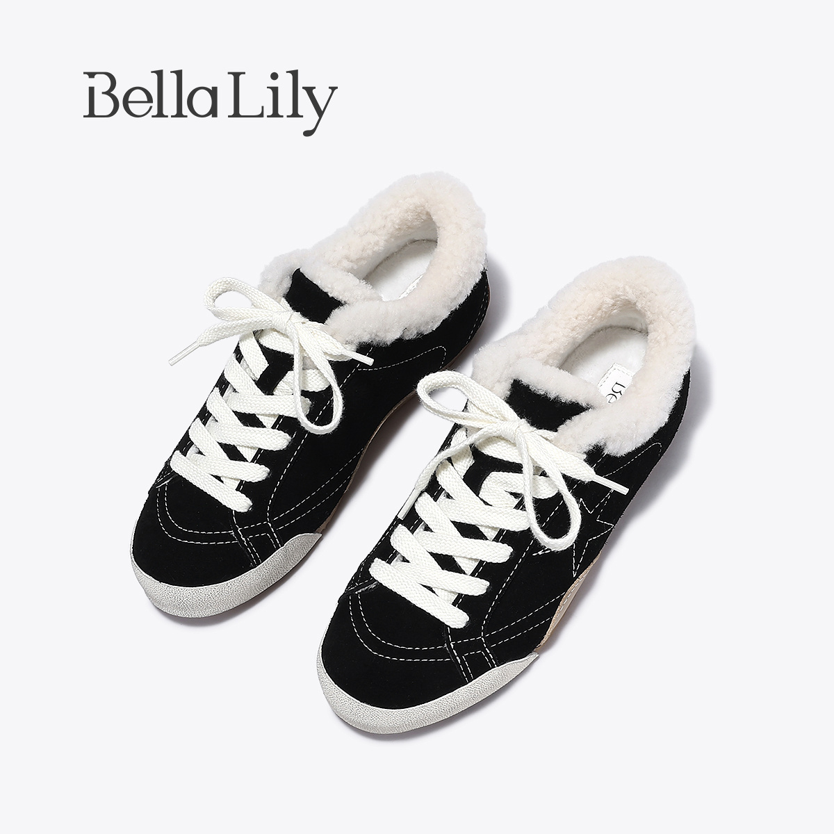 新款 休闲板鞋 经典 潮流小黑鞋 百搭加绒牛皮女鞋 BellaLily2025冬季