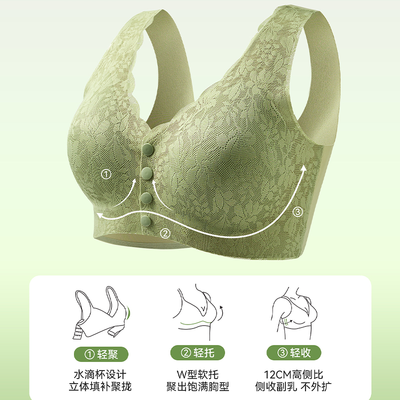 2025新款 胸罩中老年人妇女内衣无钢圈 女士舒适无痕前扣文胸背心式