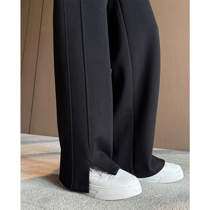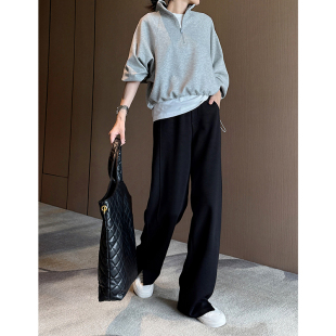女春秋新款 休闲直筒慵懒松弛感裤 高腰垂感窄版 裤 子 西装 黑色阔腿裤