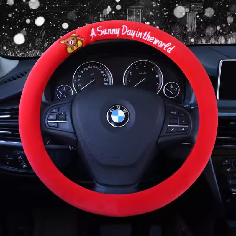 2025新款 短毛绒保护套女士防滑可爱卡通汽车把套 汽车方向盘套冬季