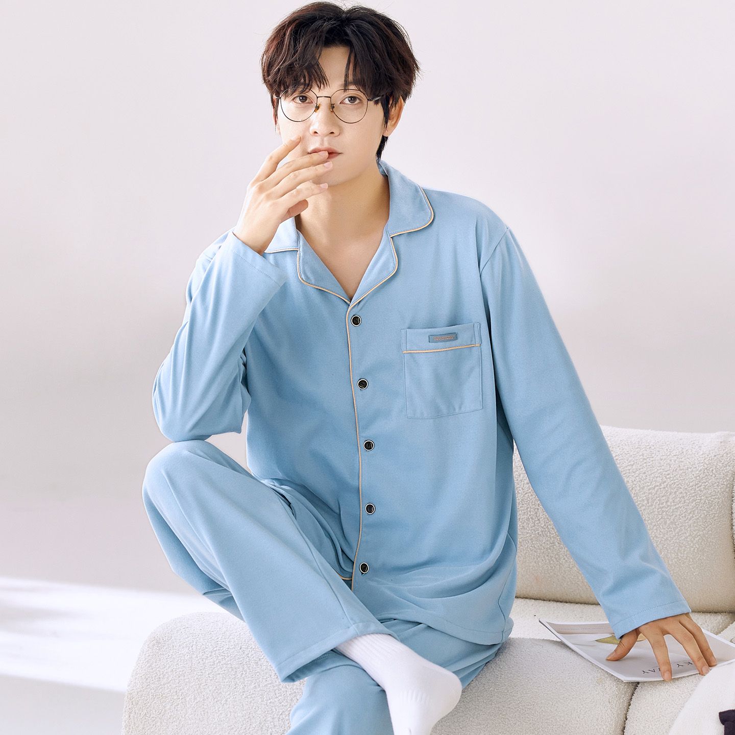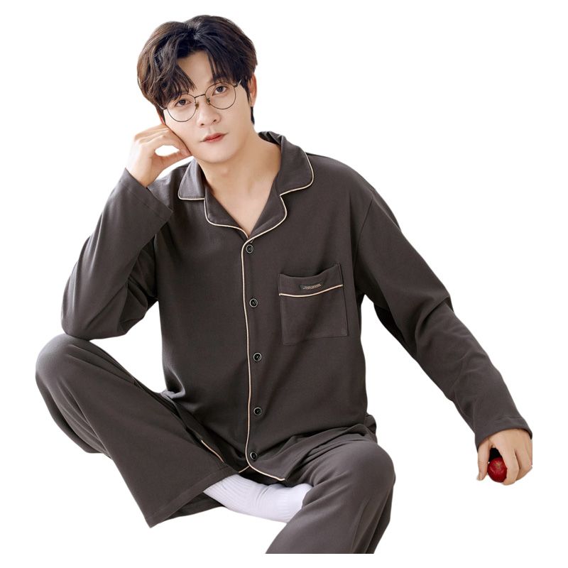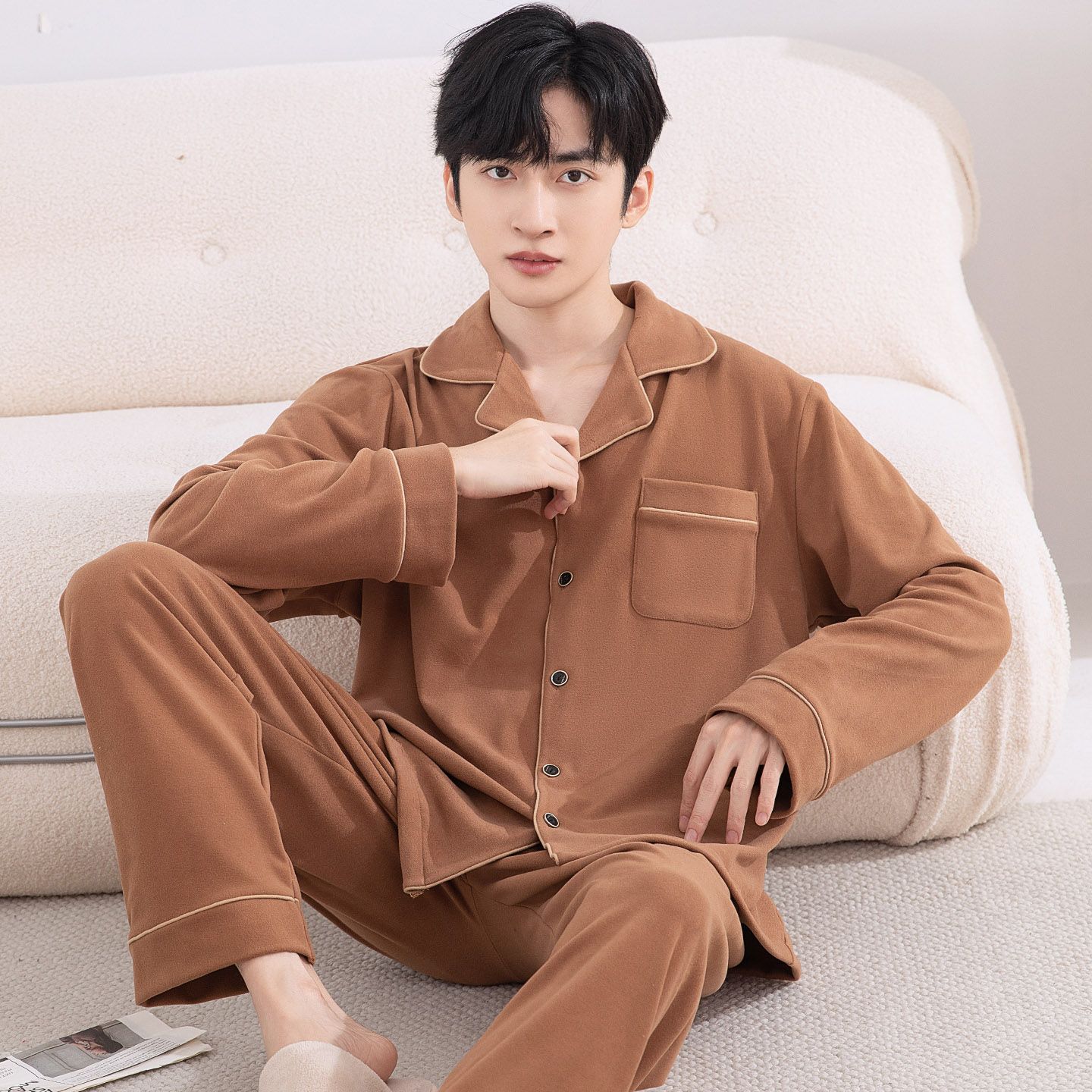 睡衣男士 长袖 简约法兰绒春秋冬季 保暖珊瑚绒套装 德绒家居服 开衫