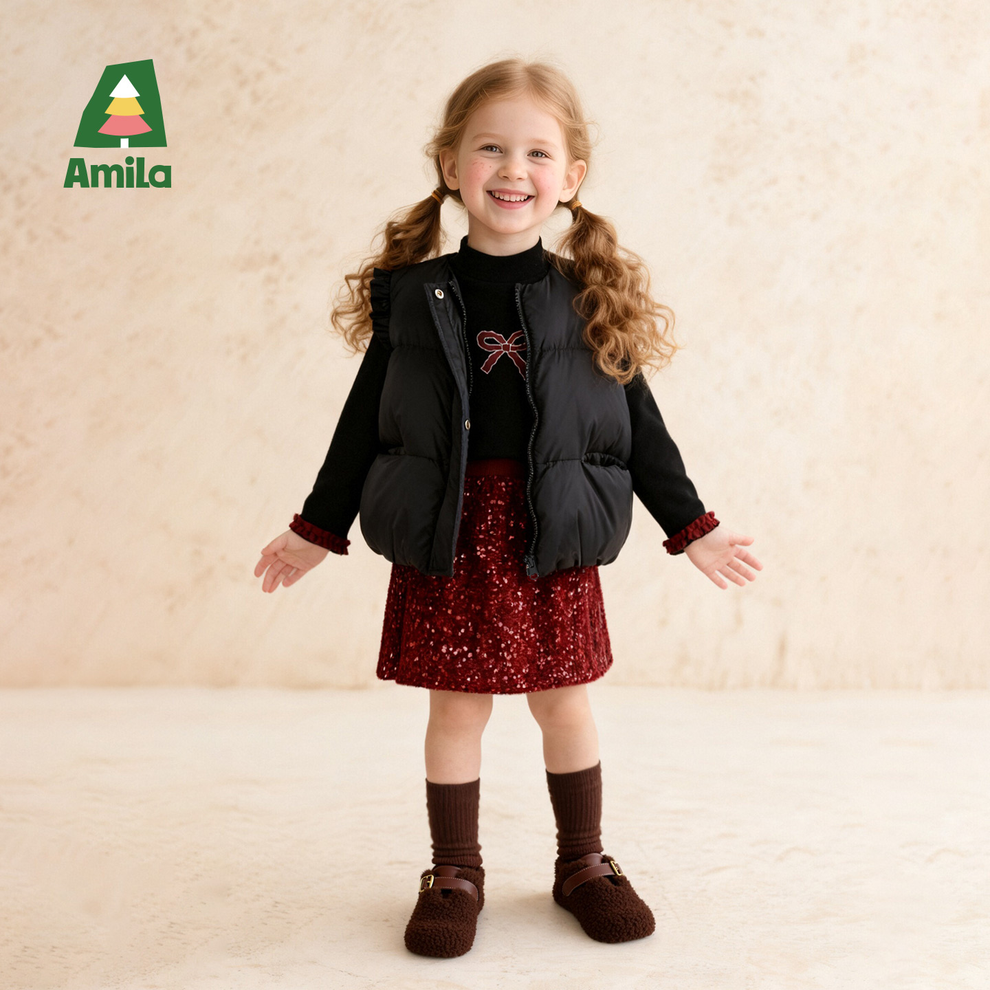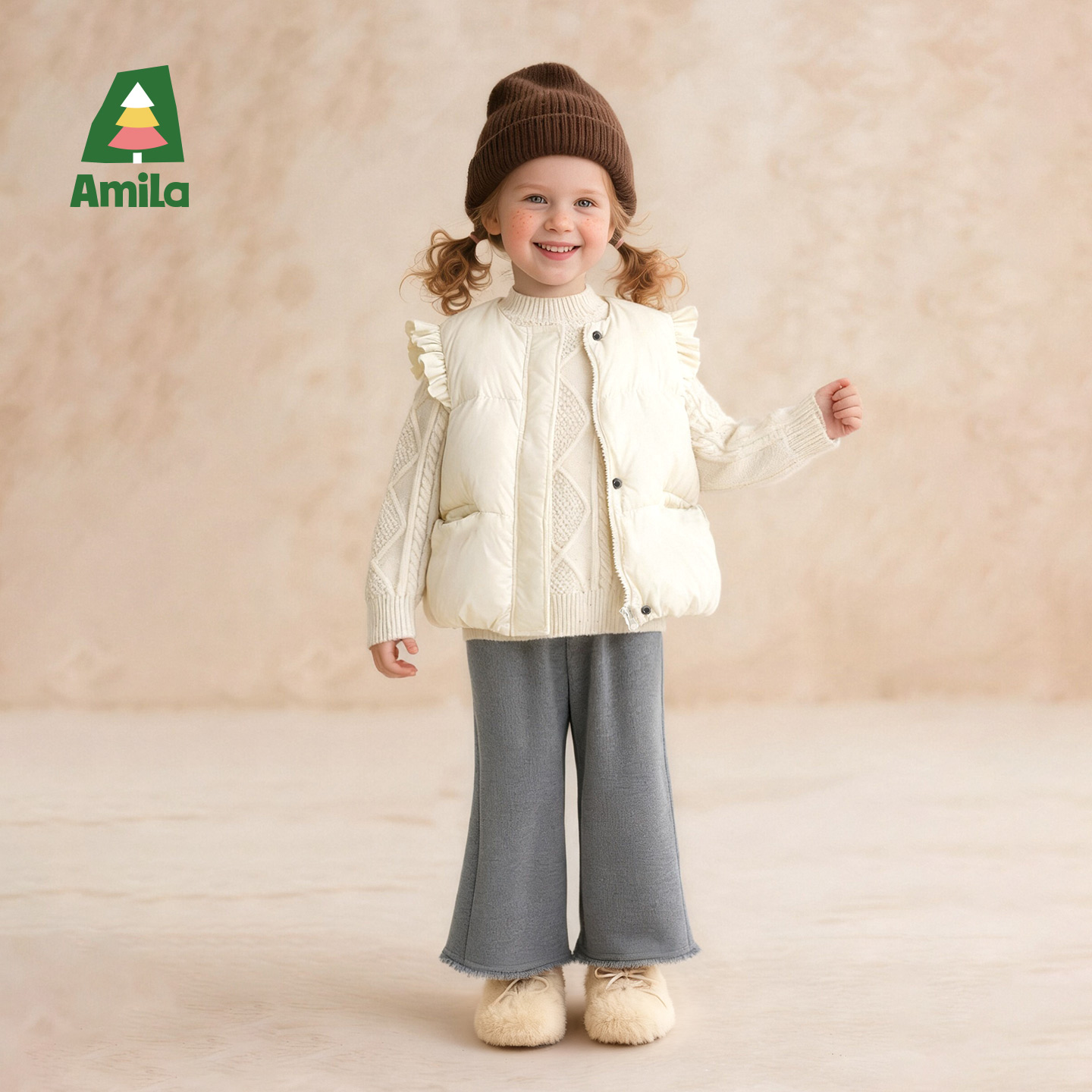 Amila女童羽绒马甲甜美百搭宝宝加厚内搭儿童白鸭绒坎肩保暖新款