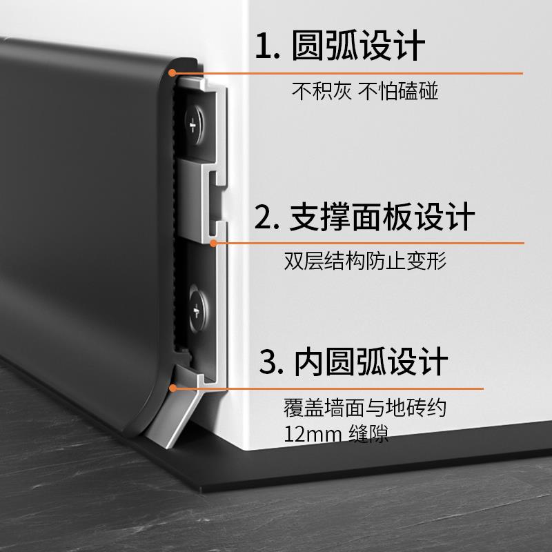 铝合金踢脚线新款 6cm8cm金属地脚线极窄不锈钢贴脚 加厚双层卡扣式