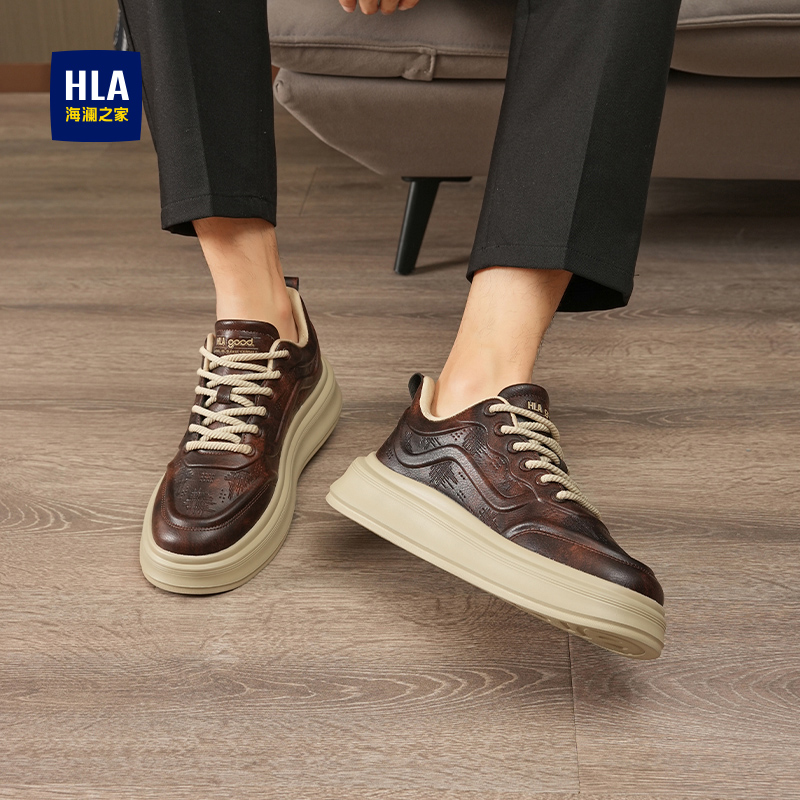 海澜之家男鞋 男厚底增高潮鞋 2025新款 皮面休闲运动板鞋 秋冬季 HLA