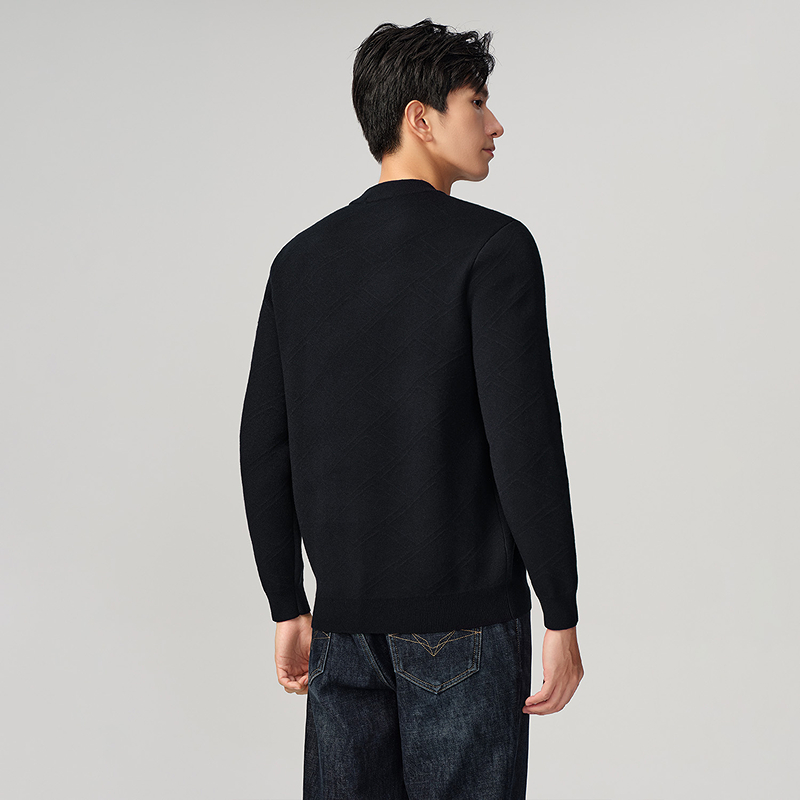 25秋冬新加绒保暖包芯纱黑色打底衫 针织衫 男 海澜之家圆领长袖 HLA