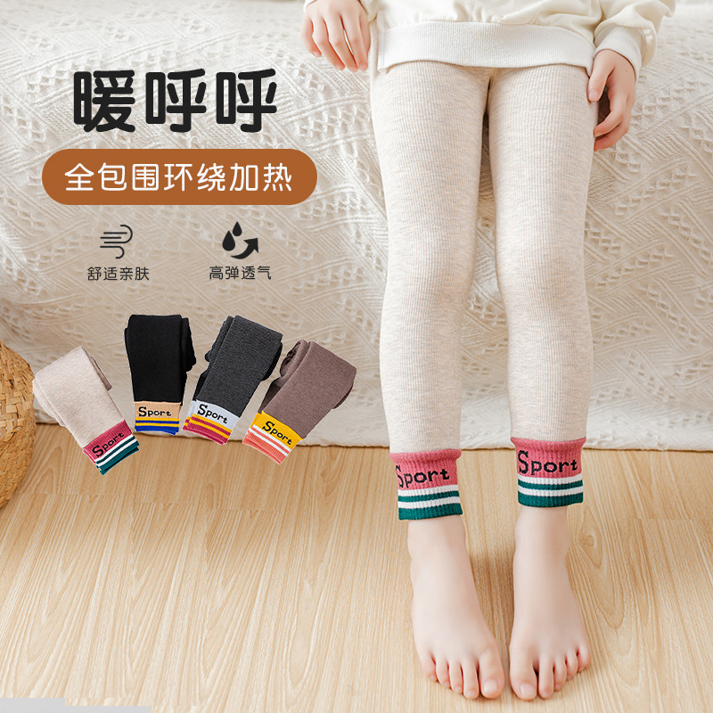 宝宝中小童女孩九分裤 儿童加厚保暖裤 加绒冬季 彩条字母女童打底裤