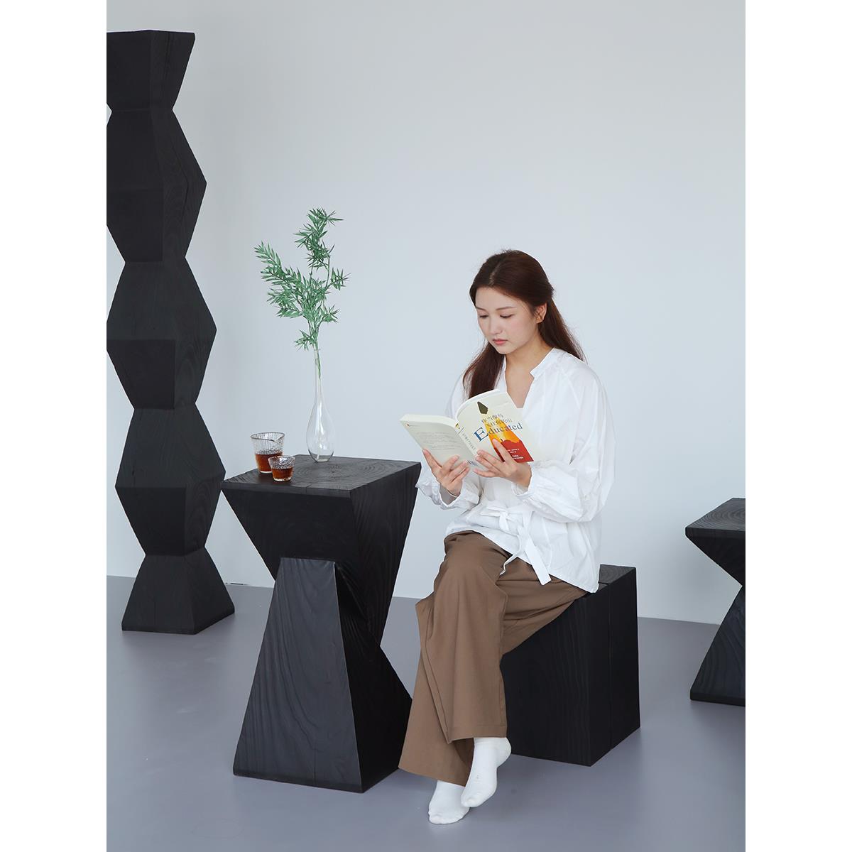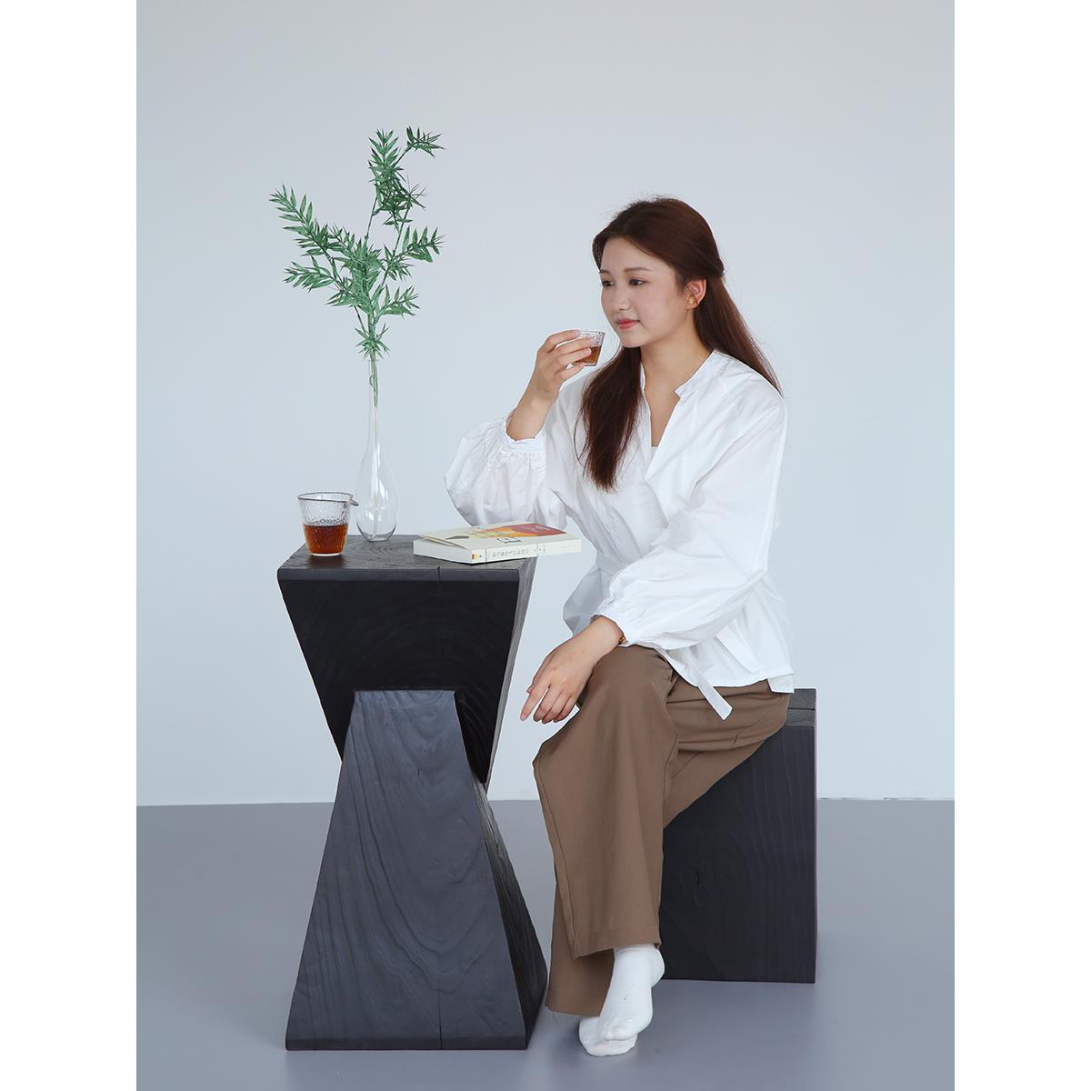 叕也 家具碳化黑色根雕凳子 侘寂风木墩花架摆件沙发边几民宿软装