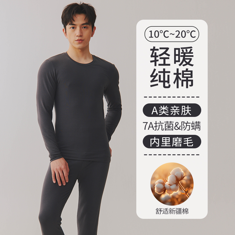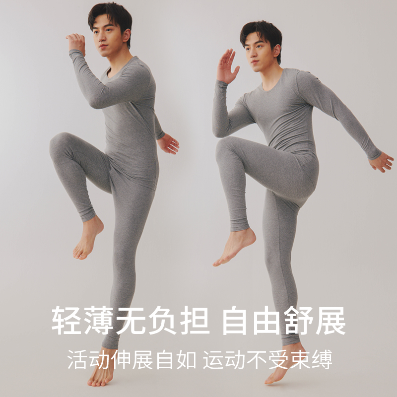 保暖内衣男士 套装 2025新款 柔软透气秋衣秋裤 高弹修身 古今纯棉薄款