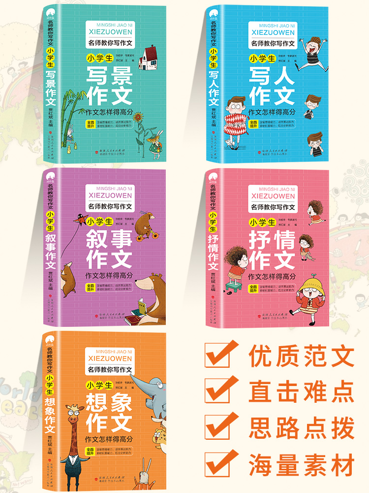 5册小学生作文书大全三年级四至六五年级上册下册配套人教版 黄冈全国优秀作文选精选B好句好词 小学分类满分获奖写人写景写事推荐